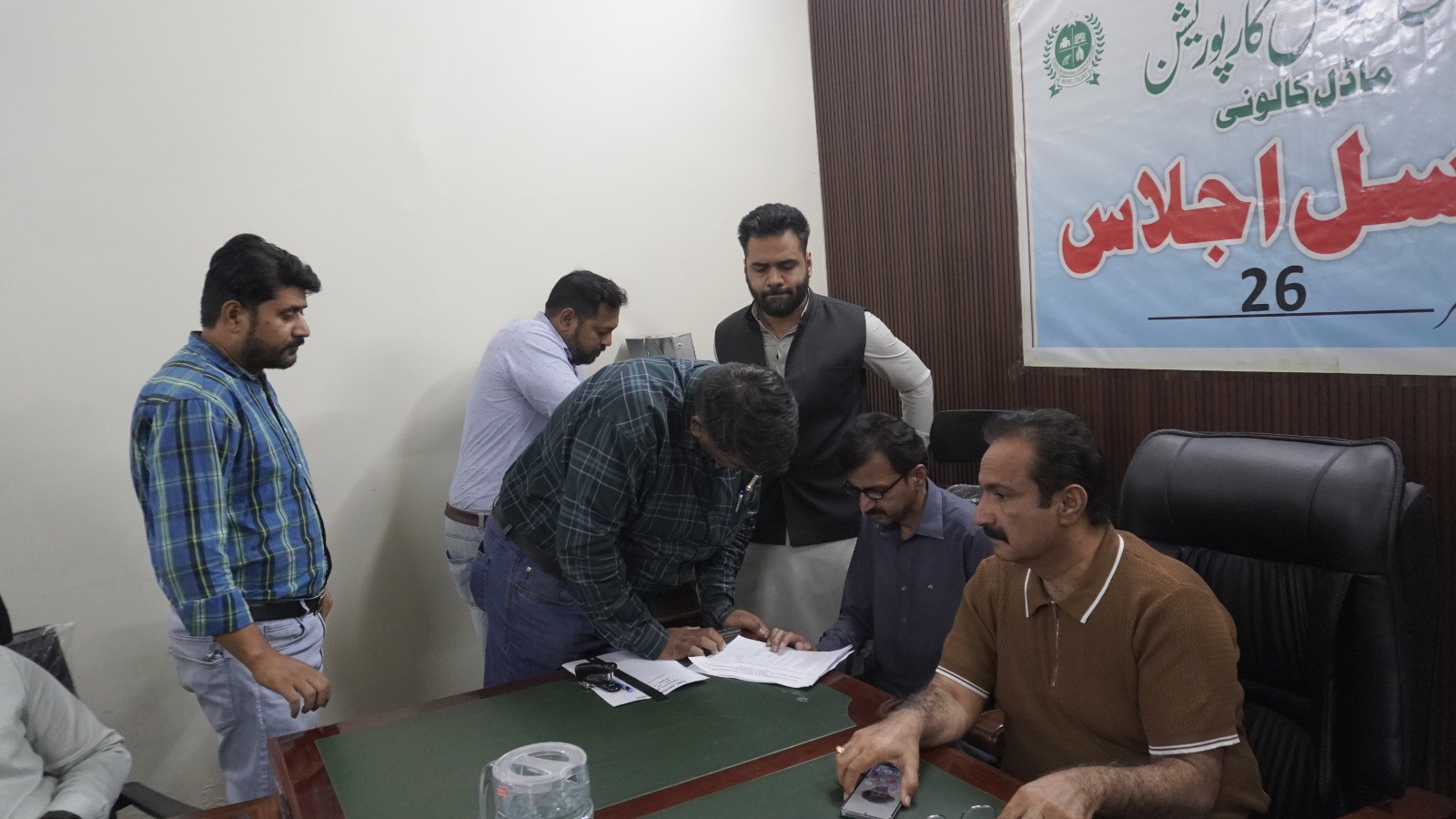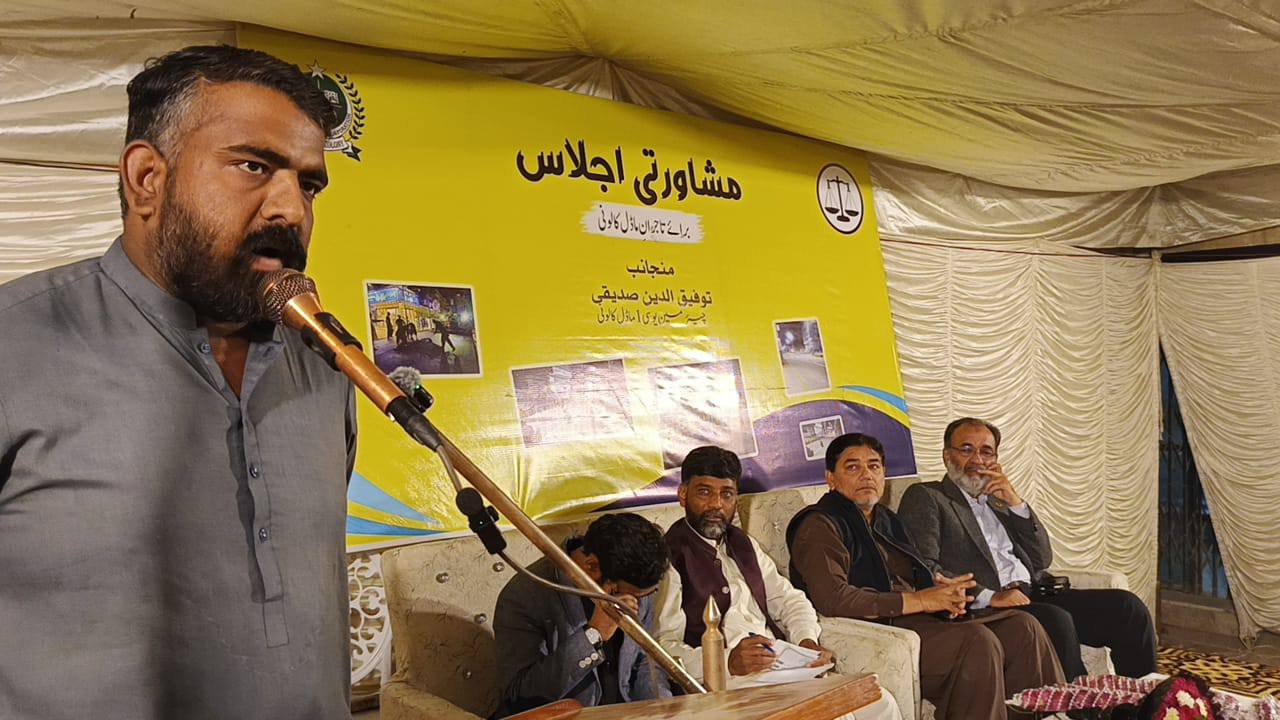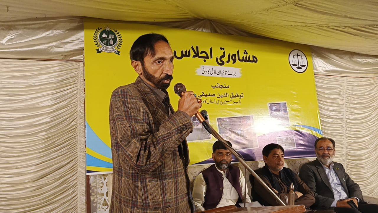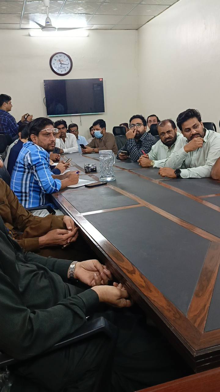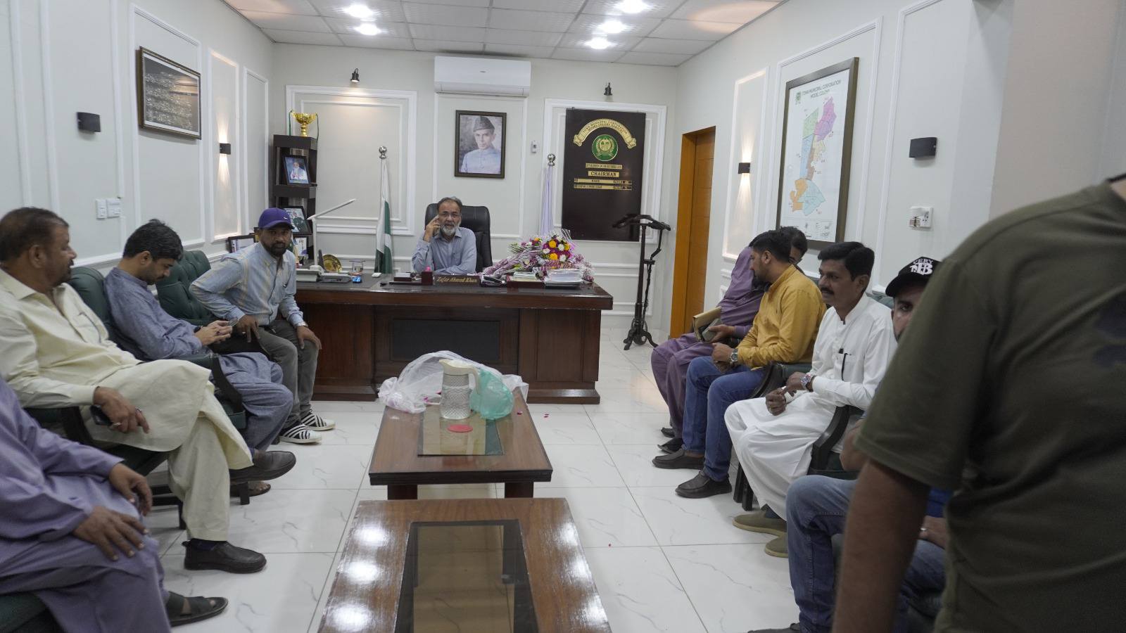 چیئرمین ٹاؤن میونسپل کارپوریشن ماڈل کالونی ظفر احمد خان کی زیرِ صدارت ماڈل کالونی ٹاؤن کے محکمہ جاتی افسران کا اجلاس۔
