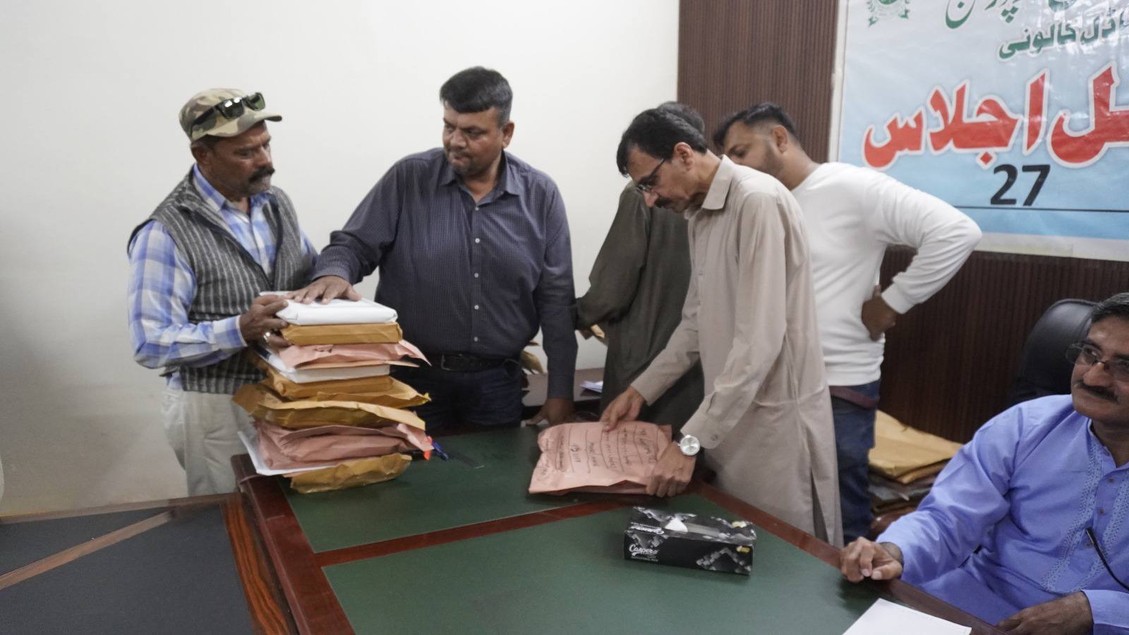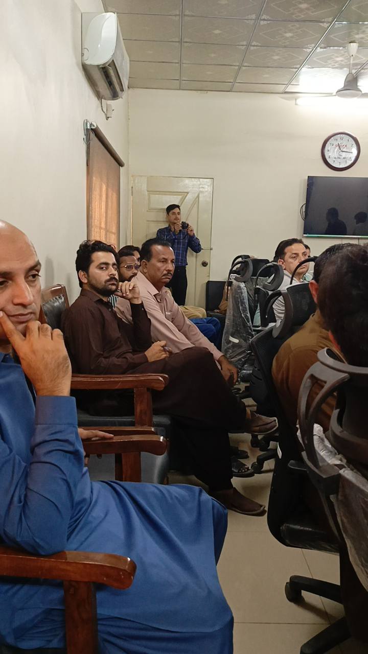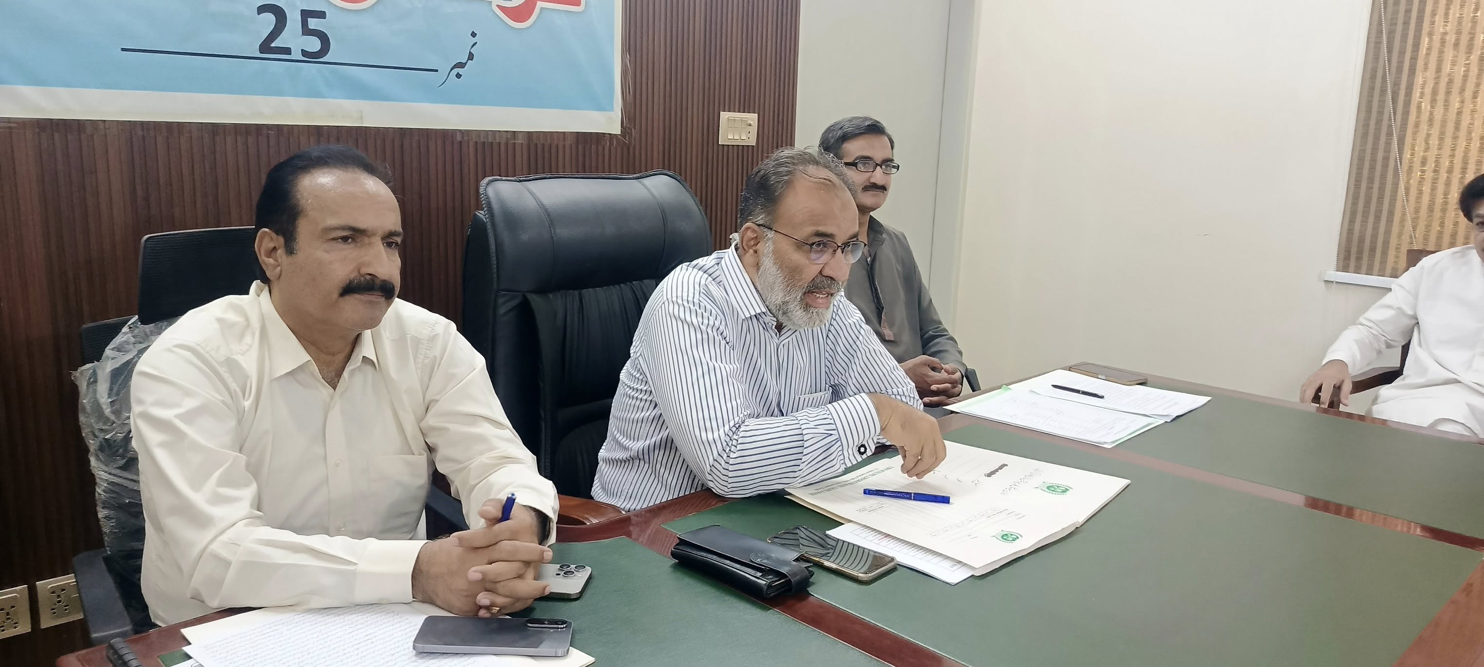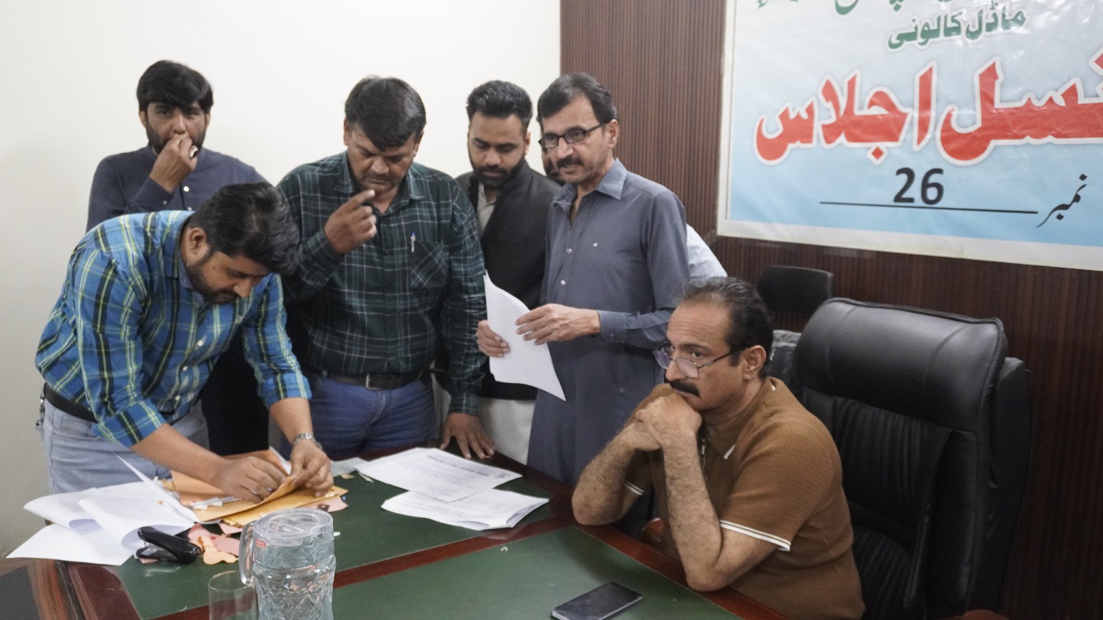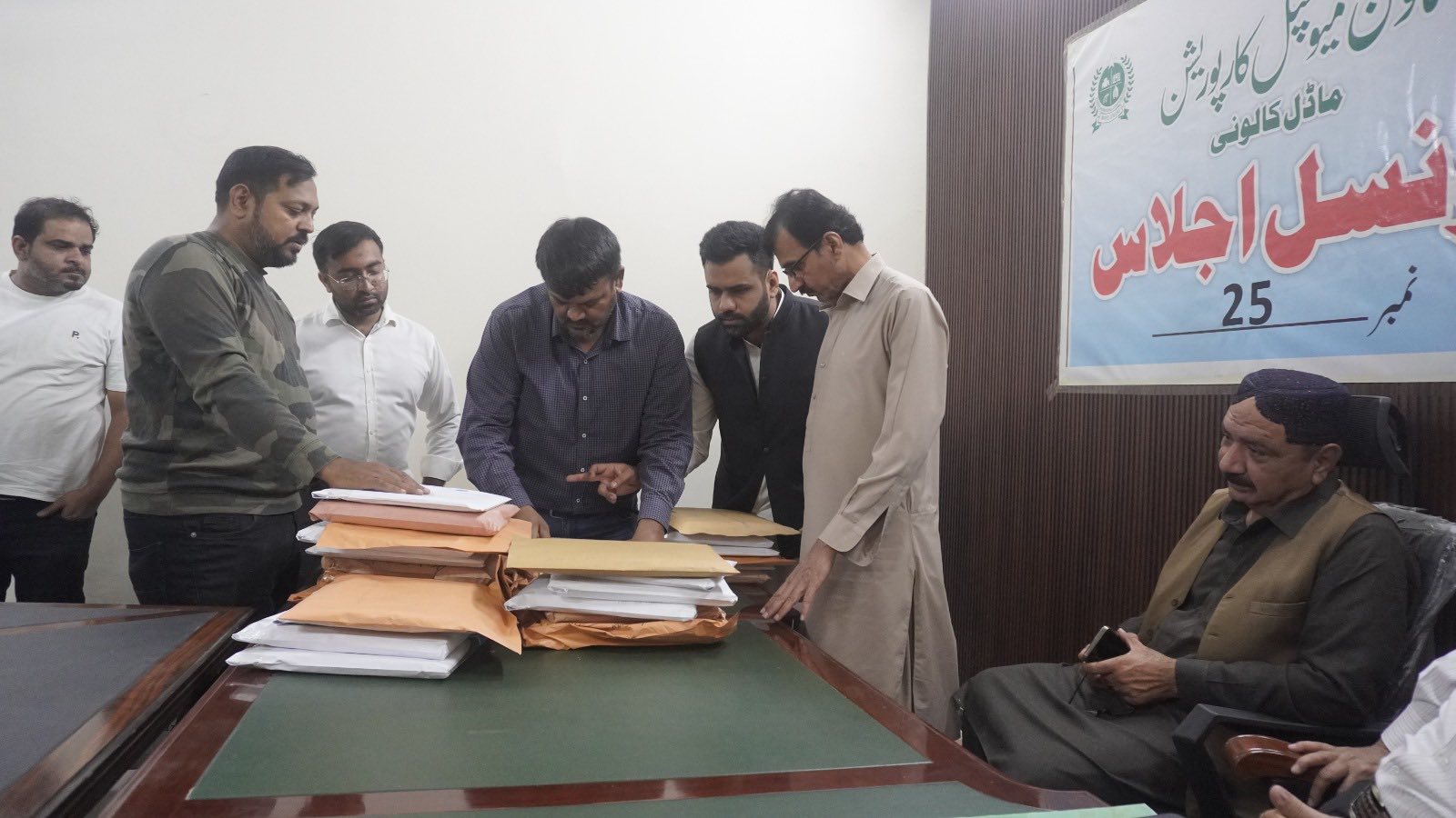 چیئرمین ٹاؤن میونسپل کارپوریشن ماڈل کالونی ظفر احمد خان کی زیرِ صدارت ماڈل کالونی ٹاؤن کے محکمہ جاتی افسران کا اجلاس۔