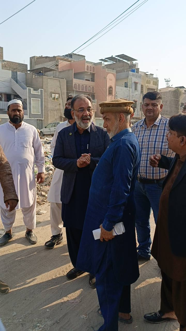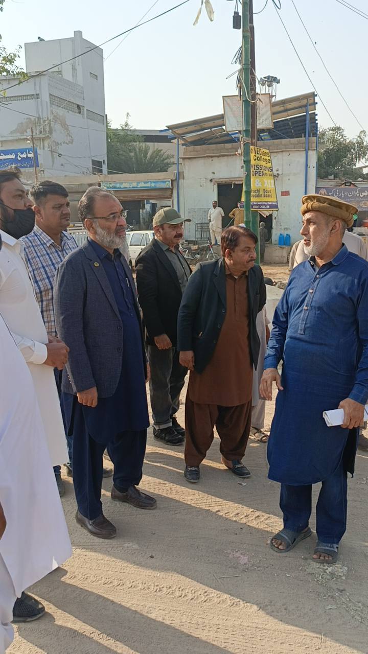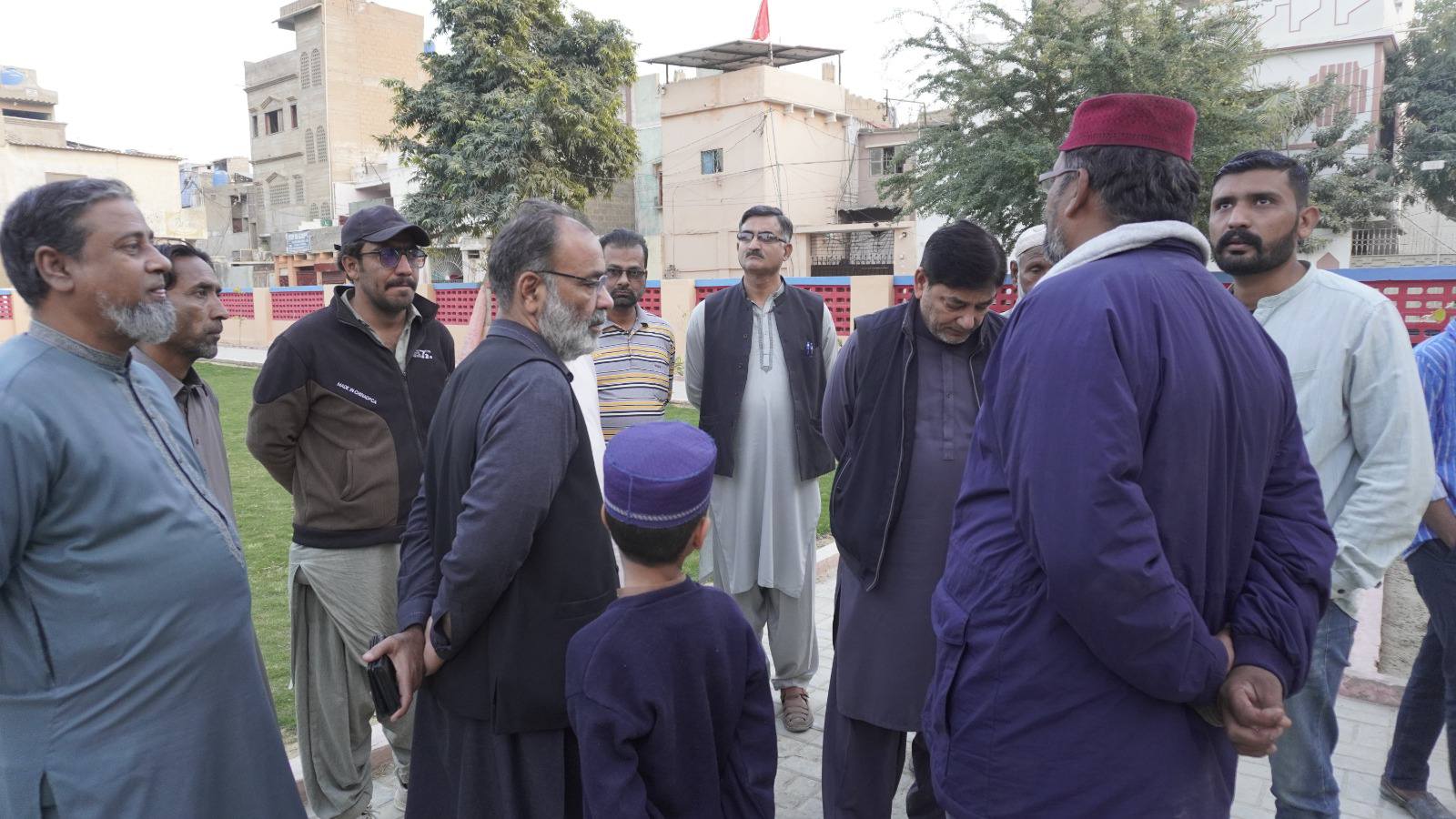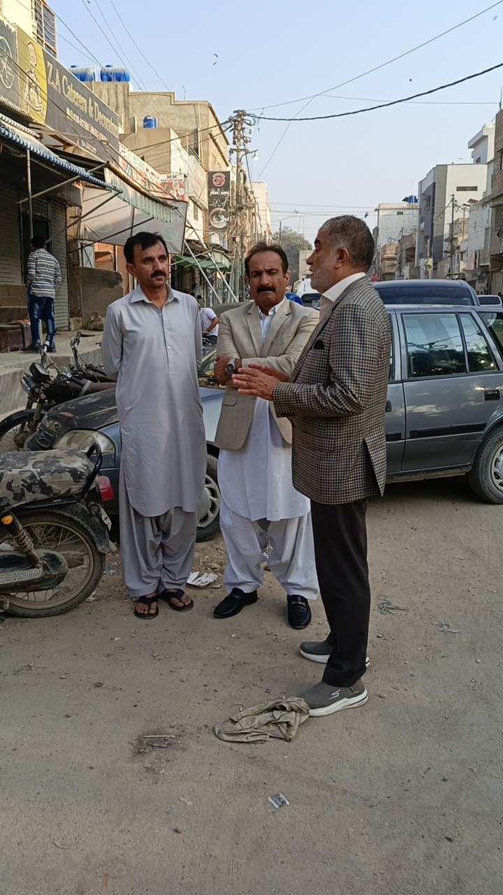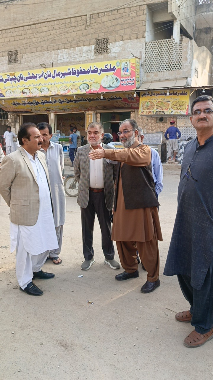 ٹاؤن چیئرمین ظفر احمد خان کی ہدایت پر ٹاؤن وائس چیئرمین فیصل باسط کا ٹاؤن کوآرڈینیٹر انجینئر محمد زکی الدین کے ہمراہ یوسی 1 عمر پارک کا دورہ۔