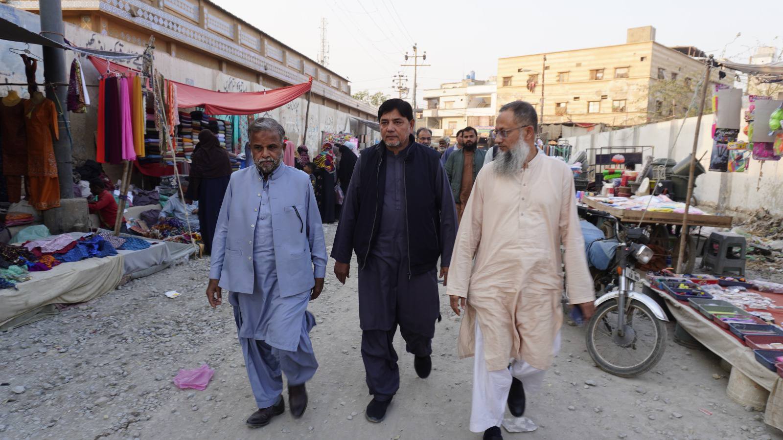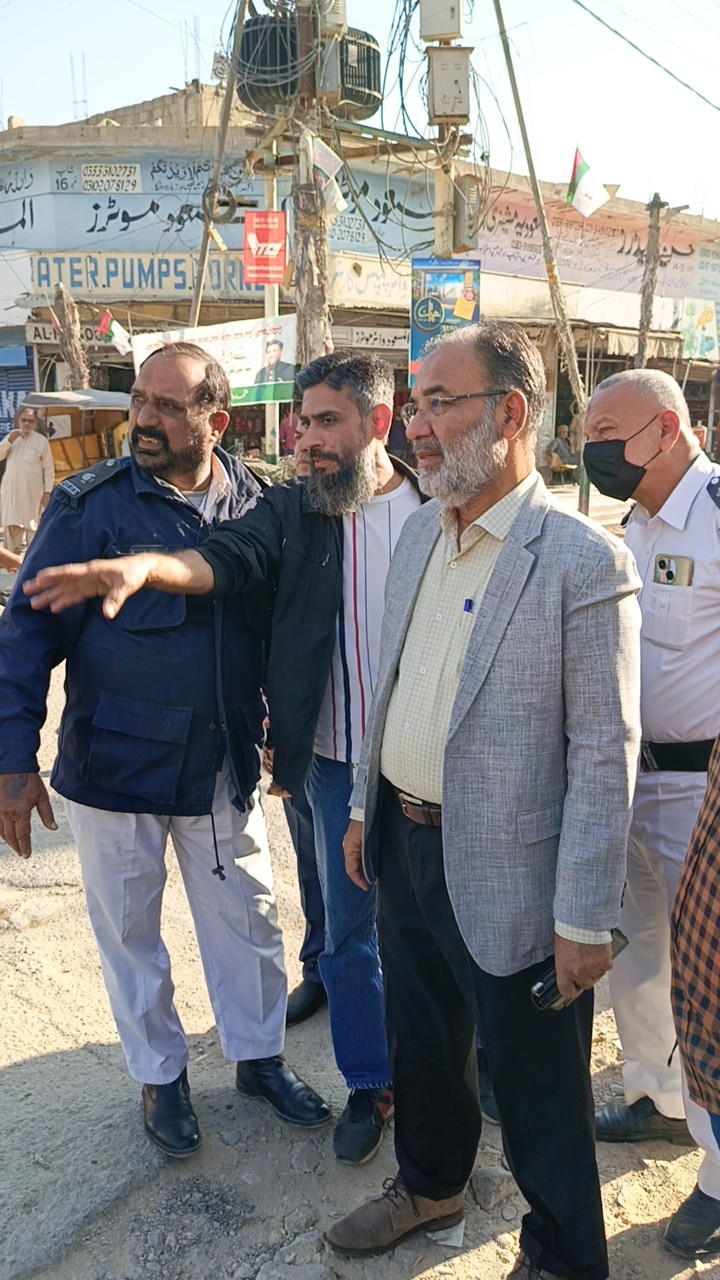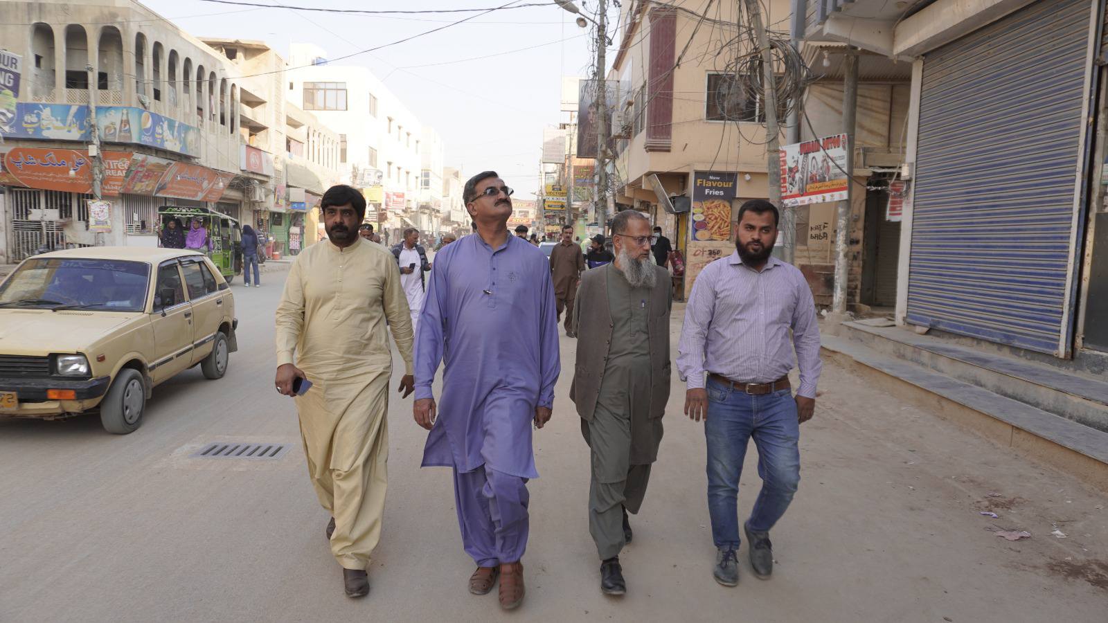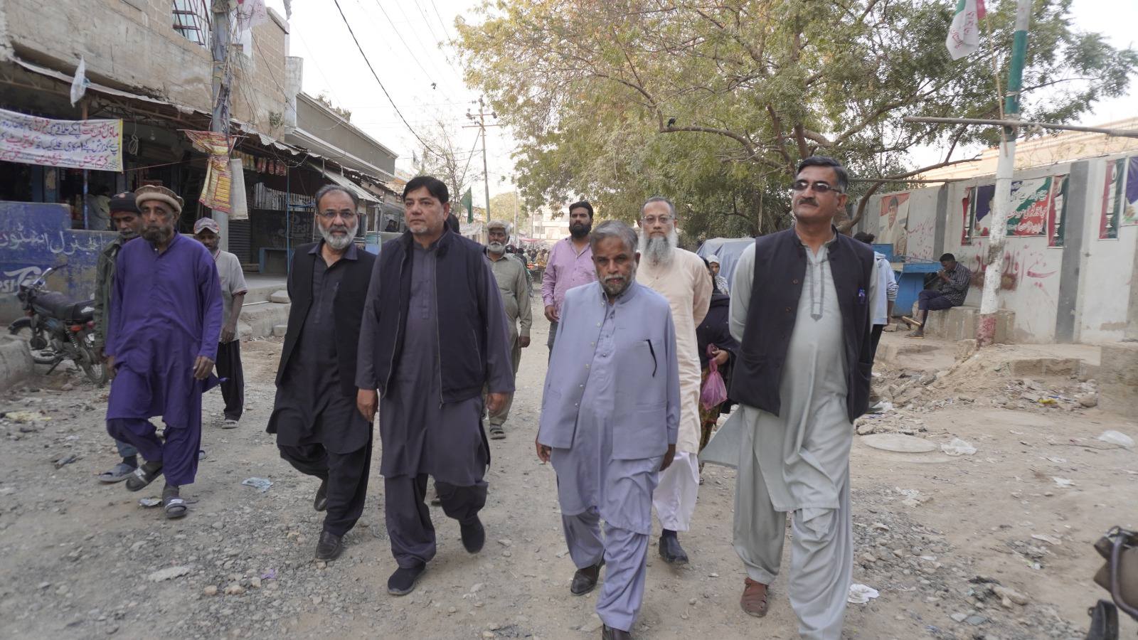 ٹاؤن چیئرمین ظفر احمد خان، یوسی 1 چیئرمین و جنرل سیکریٹری جماعت اسلامی کراچی توفیق الدین صدیقی، ٹاؤن میونسپل کمشنر سید امداد علی شاہ، ٹاؤن وائس چیئرمین فیصل باسط کا سیکیورٹی پرنٹنگ پریس تا ملیر ہالٹ روڈ کا دورہ۔