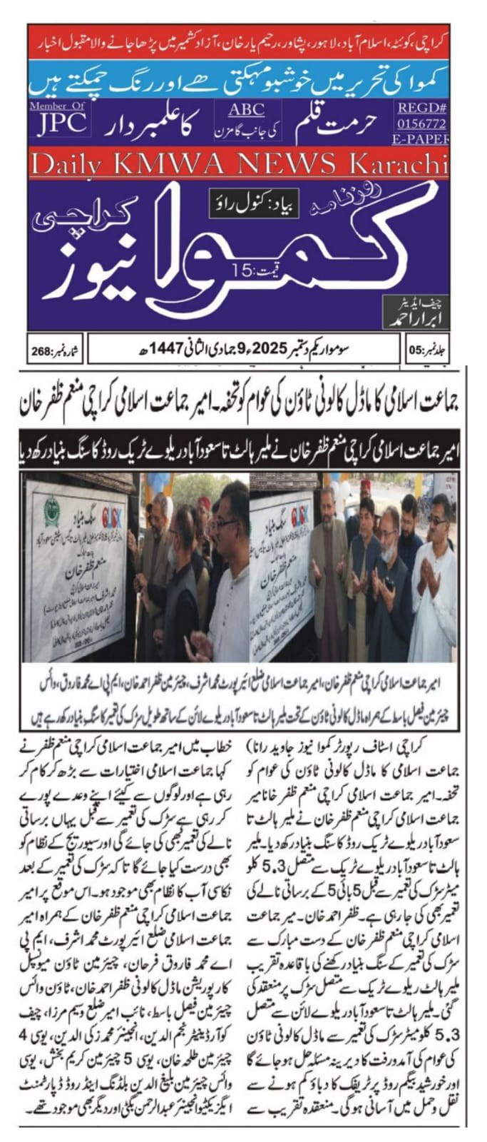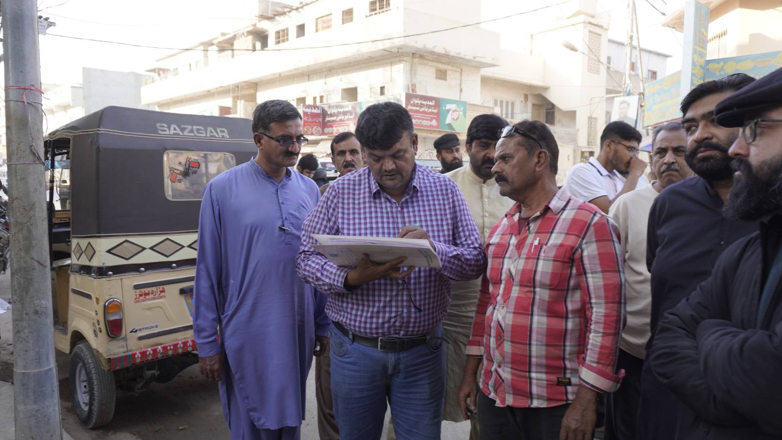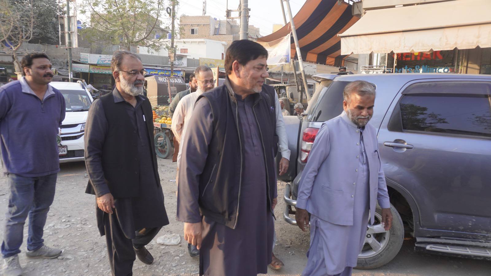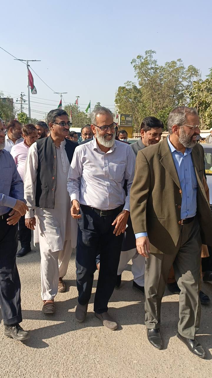 ٹاؤن چیئرمین ظفر احمد خان، یوسی 1 چیئرمین و جنرل سیکریٹری جماعت اسلامی کراچی توفیق الدین صدیقی، ٹاؤن میونسپل کمشنر سید امداد علی شاہ، ٹاؤن وائس چیئرمین فیصل باسط کا سیکیورٹی پرنٹنگ پریس تا ملیر ہالٹ روڈ کا دورہ۔