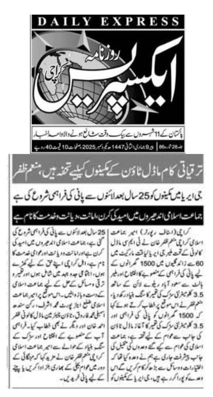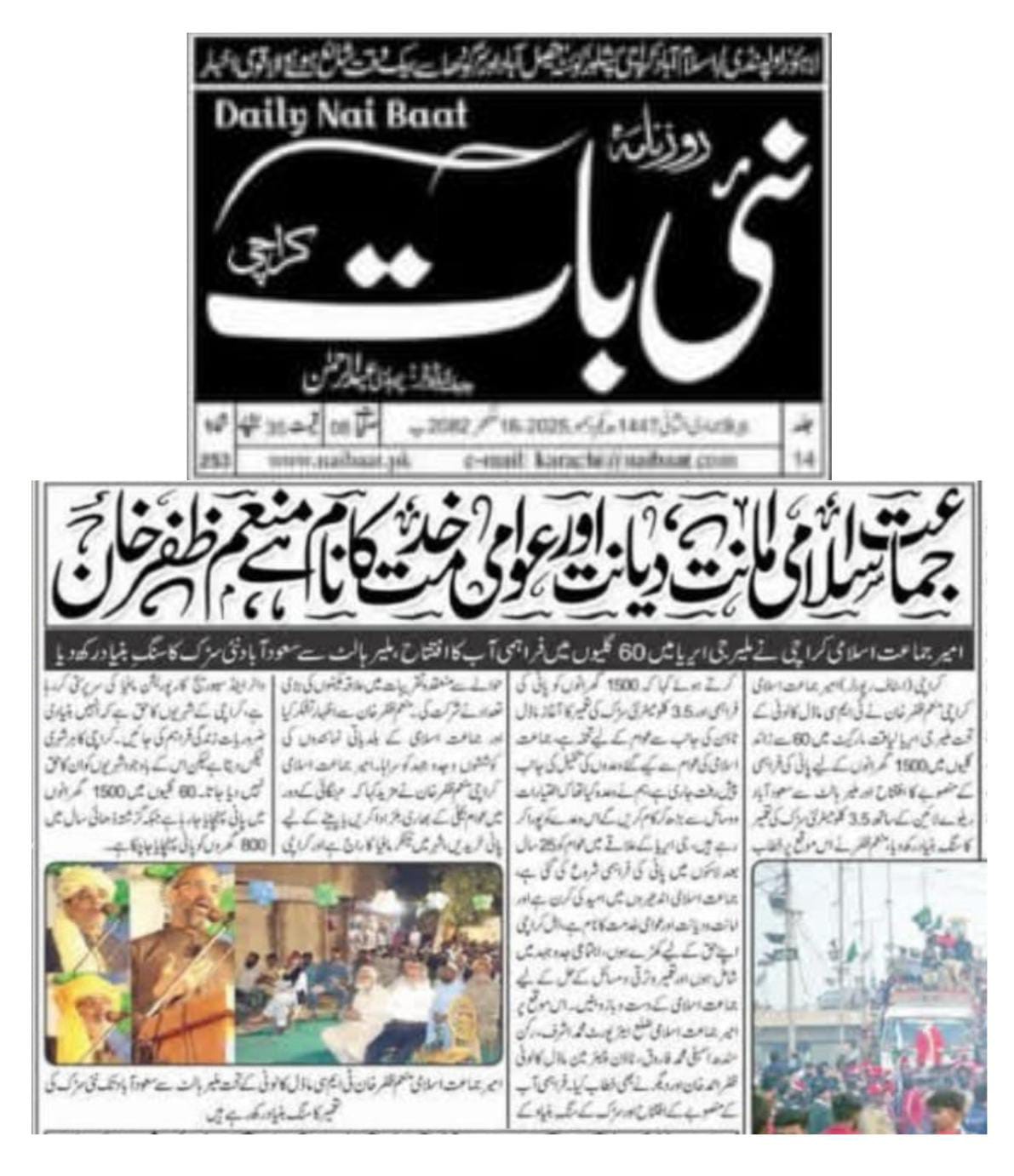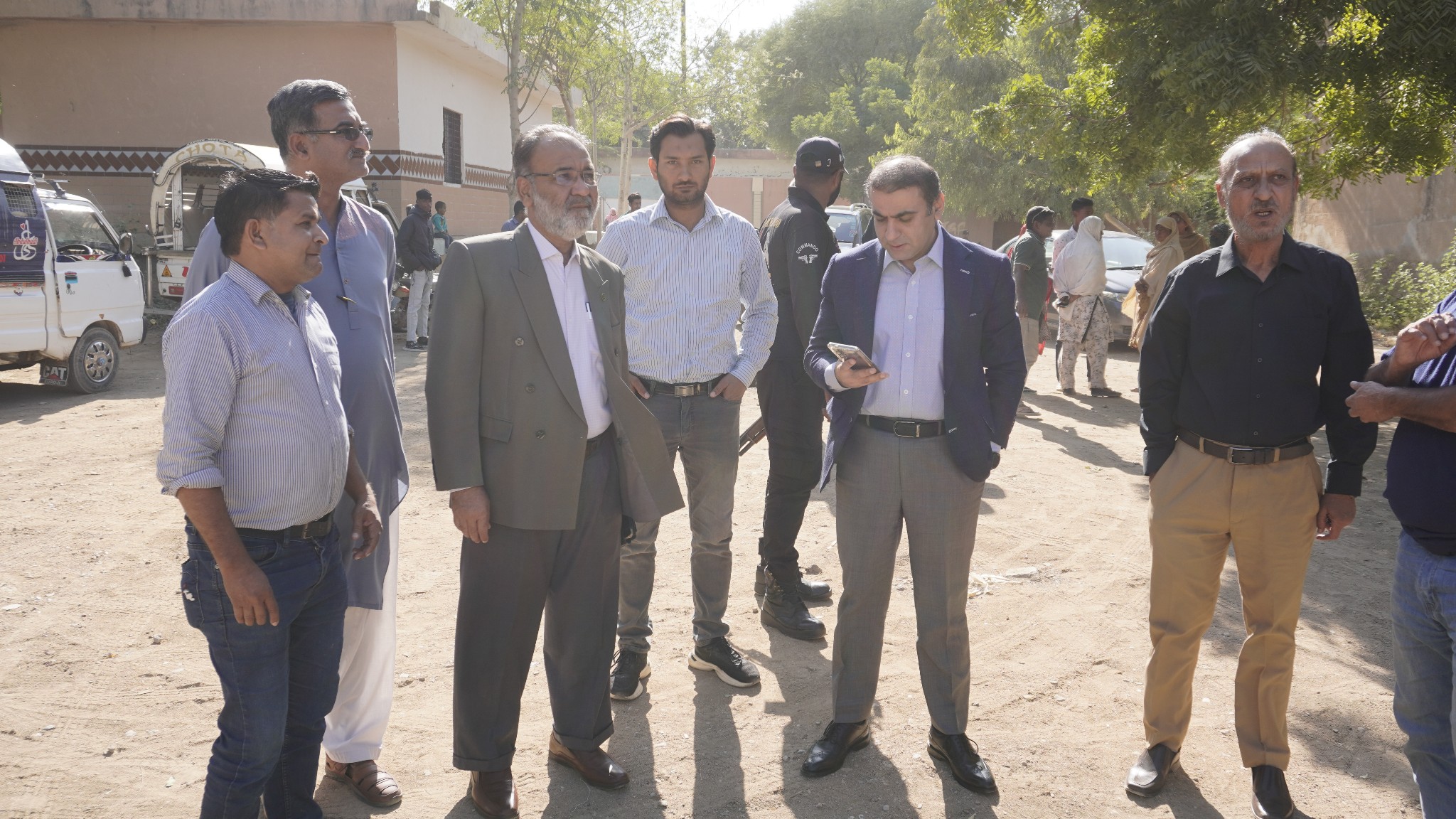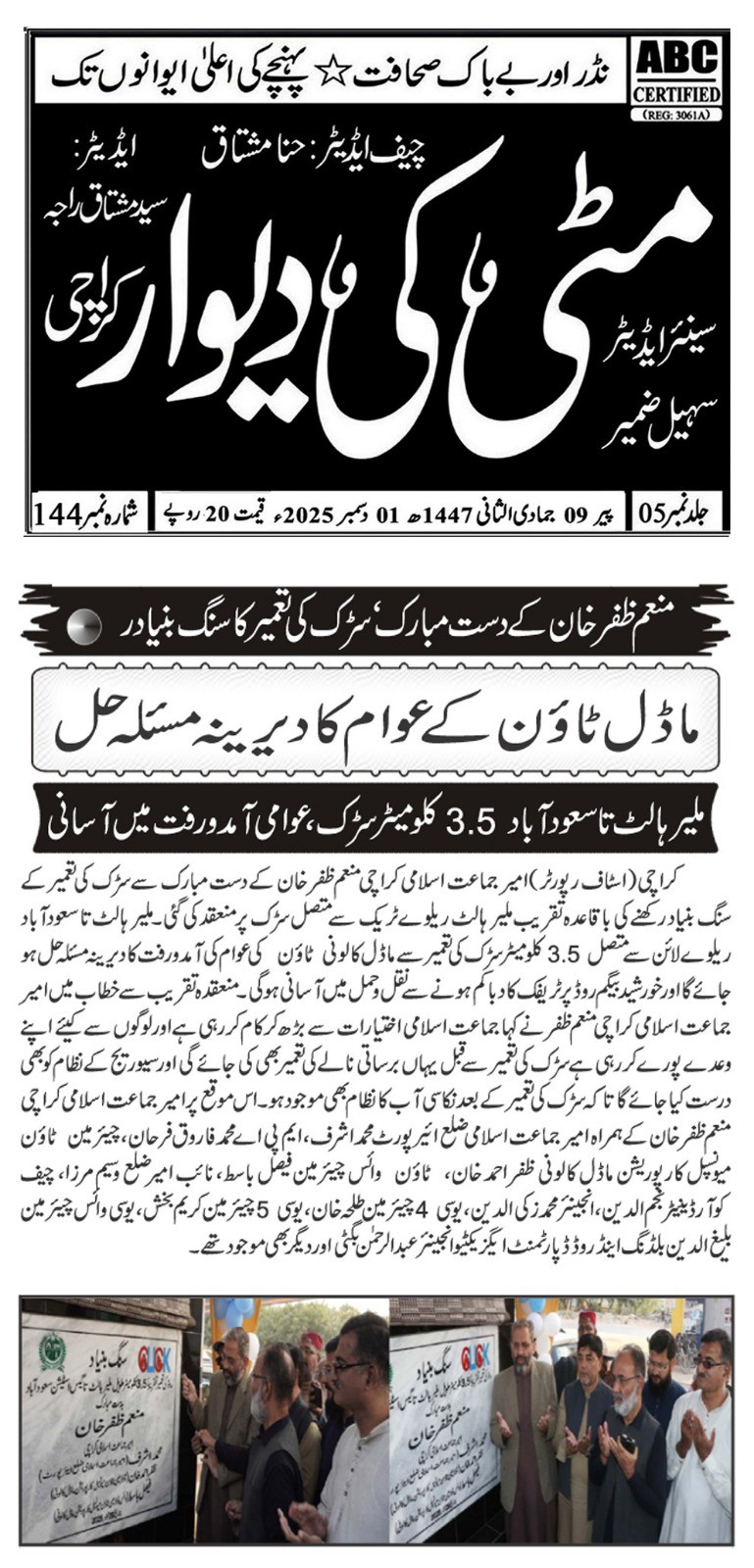 ٹاؤن چیئرمین ظفر احمد خان، یوسی 1 چیئرمین و جنرل سیکریٹری جماعت اسلامی کراچی توفیق الدین صدیقی، ٹاؤن میونسپل کمشنر سید امداد علی شاہ، ٹاؤن وائس چیئرمین فیصل باسط کا سیکیورٹی پرنٹنگ پریس تا ملیر ہالٹ روڈ کا دورہ۔