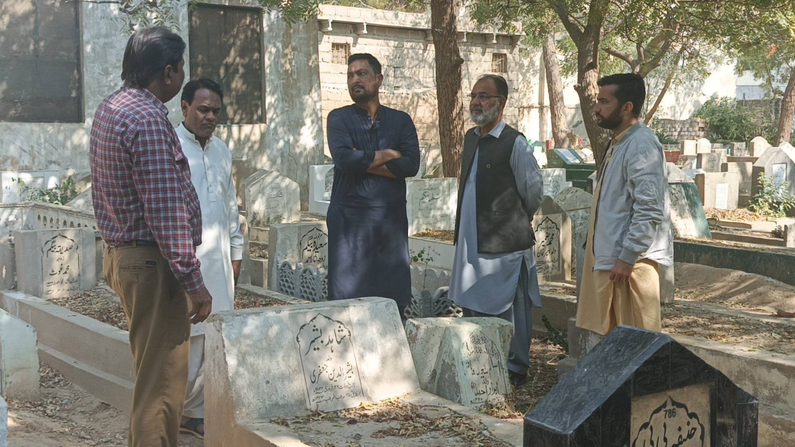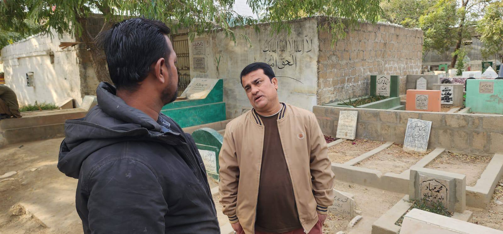 چیئرمین ٹاؤن میونسپل کارپوریشن ماڈل کالونی ظفر احمد خان کی ہدایت پر شب برات سے قبل زائرین کو بلدیاتی سہولیات کی فراہمی کے لئے ٹاؤن کورآرڈینیٹر سید مبرور الحق موبی، ولید لالا کا ماڈل کالونی ٹاؤن کے قبرستانوں کا دورہ۔