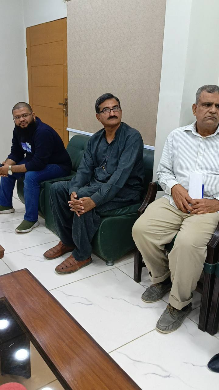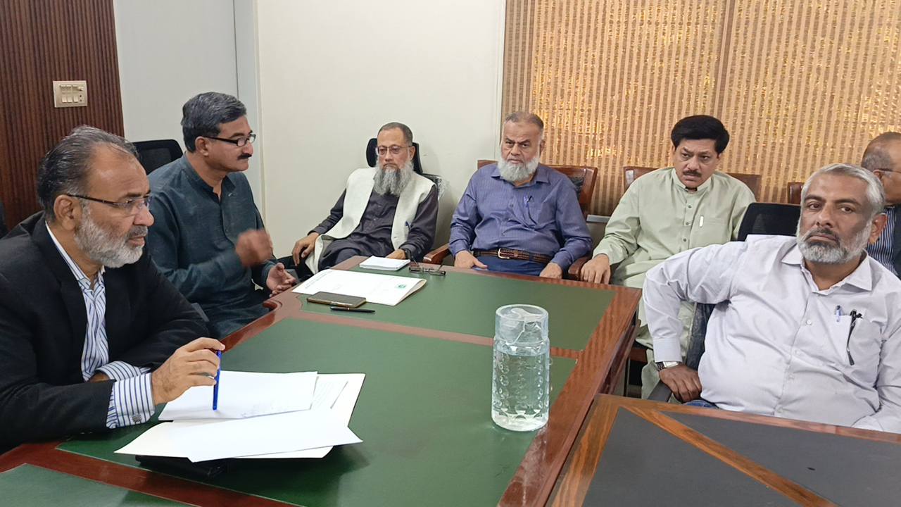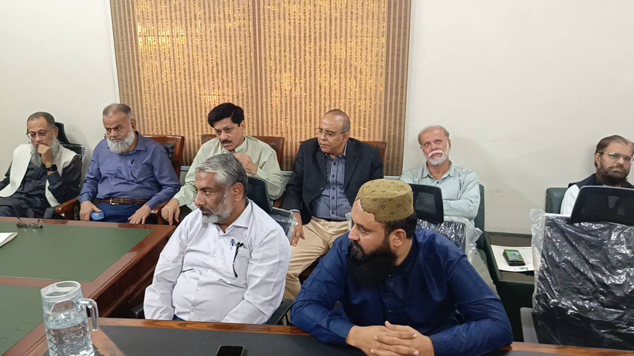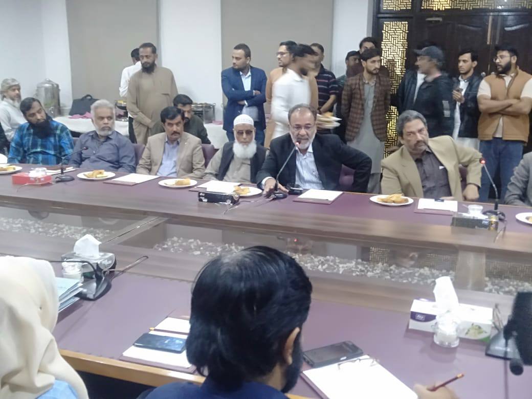 امیر جماعت اسلامی کراچی منعم ظفر خان بجٹ 2025-26 کے حوالے سے اپوزیشن لیڈر کے ایم سی سیف الدین ایڈوکیٹ و ٹاؤن چیئرمینوں کے ہمراہ ادارہ نورحق میں پوسٹ بجٹ بریفنگ دے رہےہیں۔