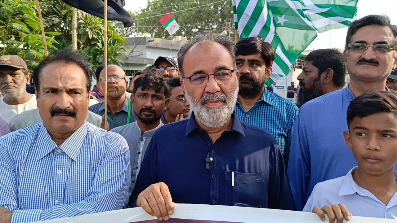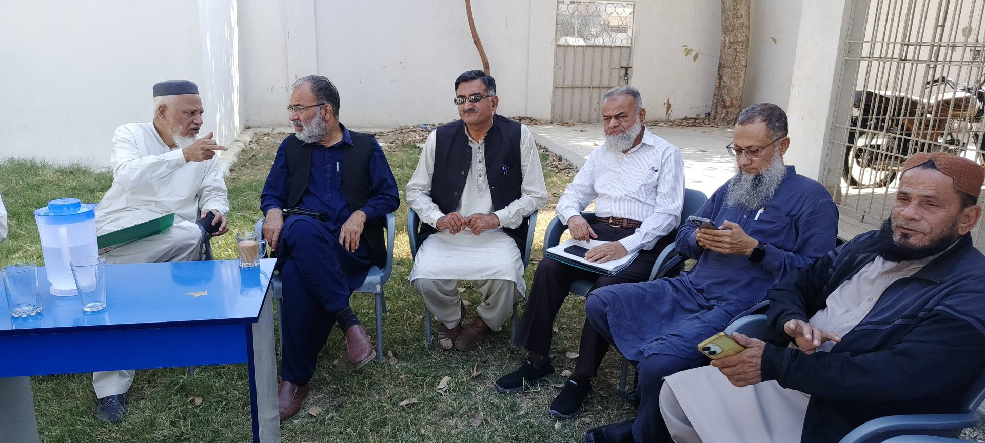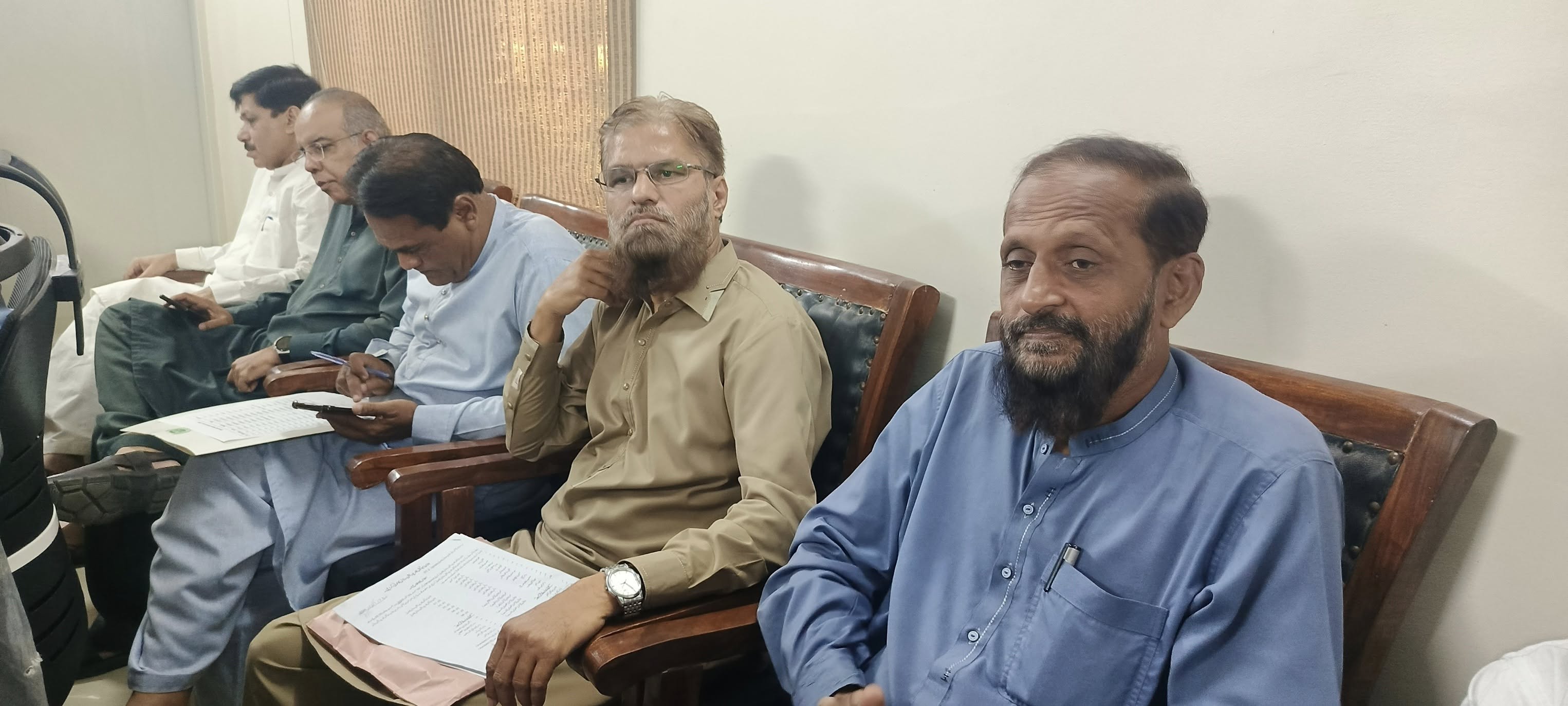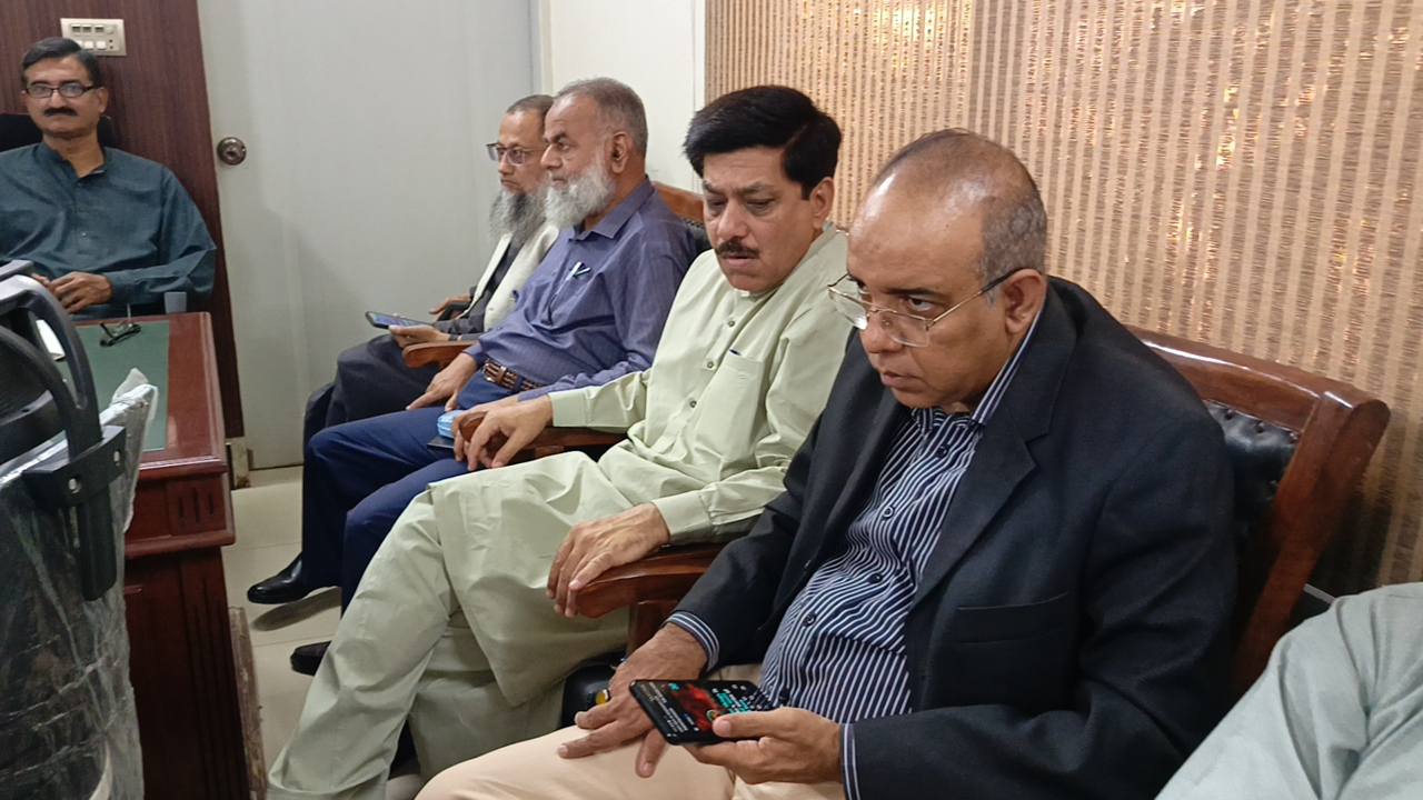 امیر جماعت اسلامی کراچی منعم ظفر خان بجٹ 2025-26 کے حوالے سے اپوزیشن لیڈر کے ایم سی سیف الدین ایڈوکیٹ و ٹاؤن چیئرمینوں کے ہمراہ ادارہ نورحق میں پوسٹ بجٹ بریفنگ دے رہےہیں۔