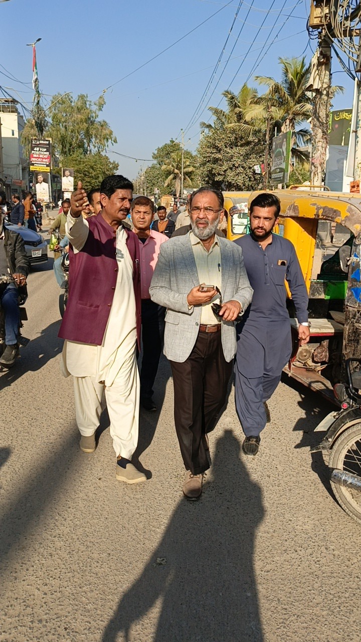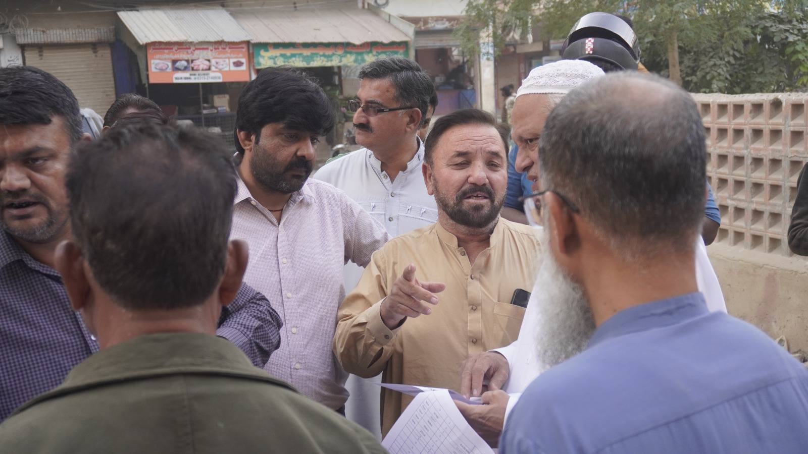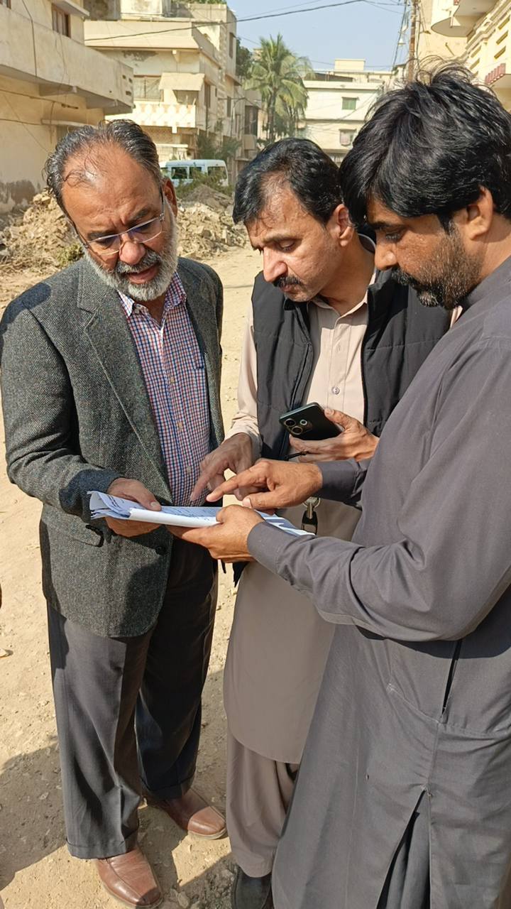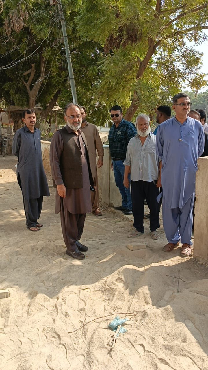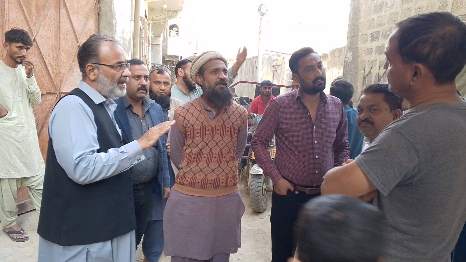 چیئرمین ٹاؤن میونسپل کارپوریشن ماڈل کالونی ظفر احمد خان کی ہدایت پر ٹاؤن وائس چیئرمین فیصل باسط کا ٹاؤن کورآرڈینیٹر انجینئر محمد زکی الدین کے ہمراہ یوسی 7 کا دورہ۔