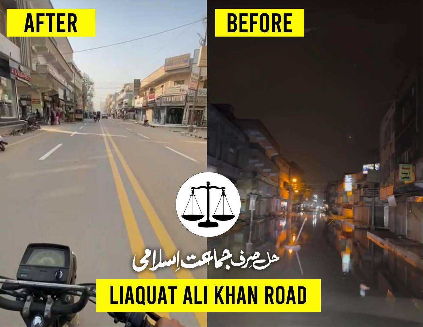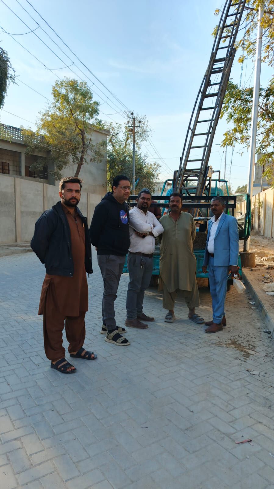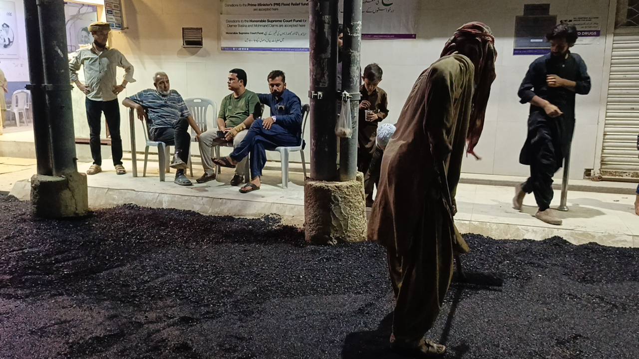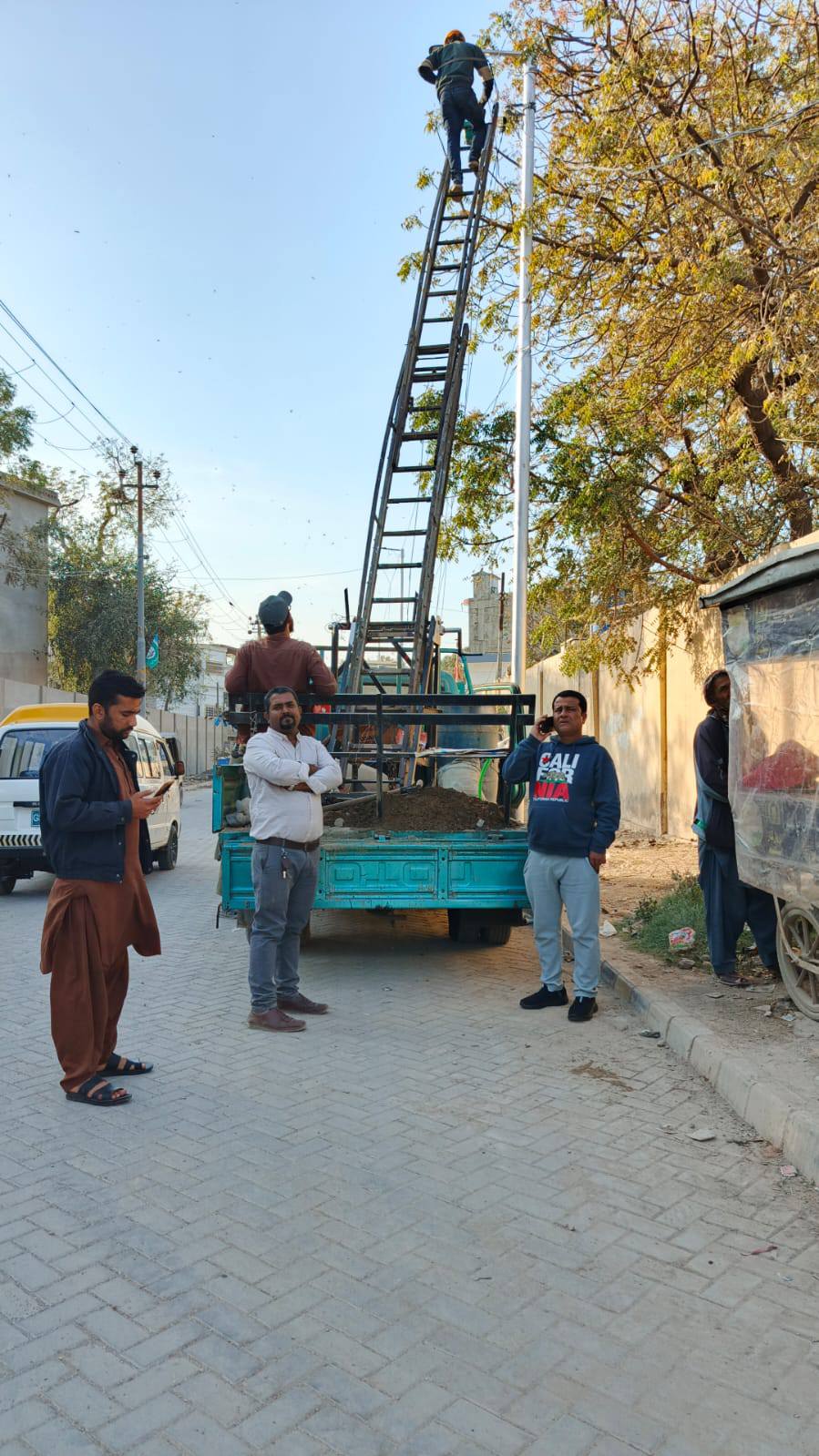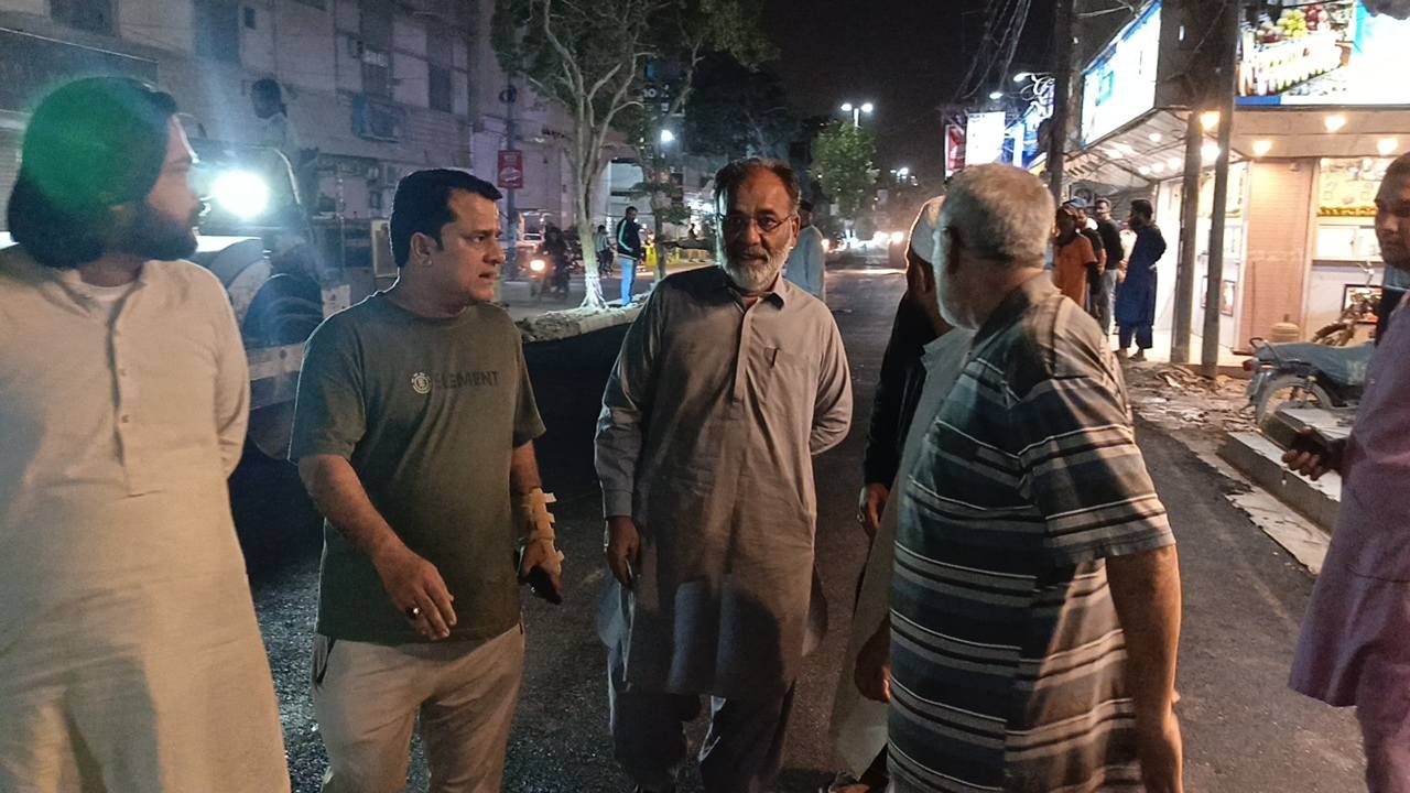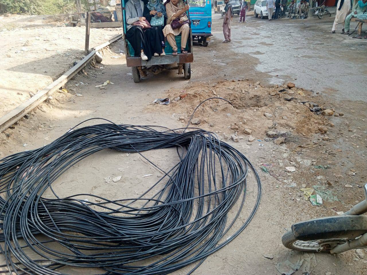 نو تعمیر شدہ سڑک پر ٹاؤن چیئرمین ظفر احمد خان کی ہدایت پر ٹاؤن کورآرڈینیٹر سید مبرور الحق موبی، ولید لالا کی نگرانی میں اسٹریٹ لائٹس کی تنصیب کا کام جاری ہے۔