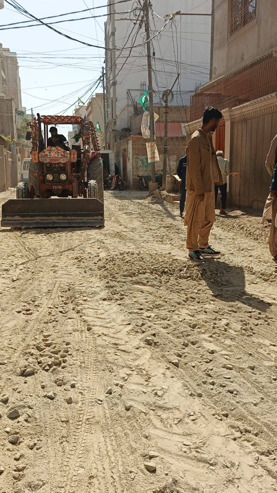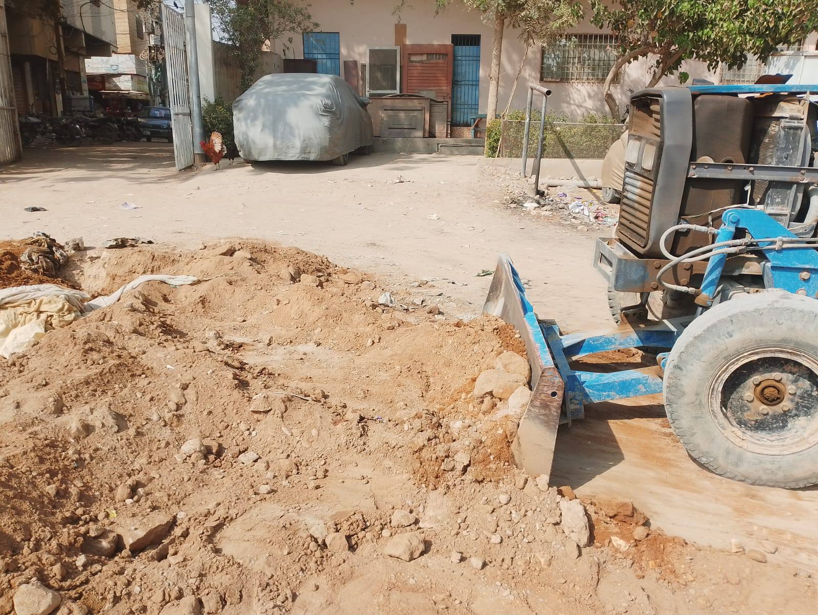 ٹاؤن وائس چیئرمین فیصل باسط کی نگرانی میں یوسی 5 خواجہ چوک پاکستان پبلک اسکول والے روڈ کی تعمیر سے قبل گیڑا بچھایا جا رہا ہے اور لیولنگ کا کام جاری ہے۔