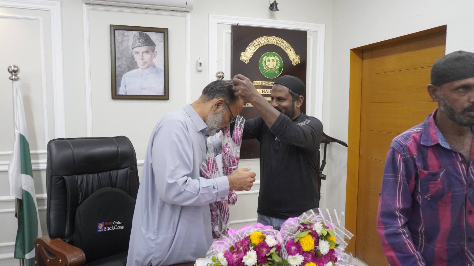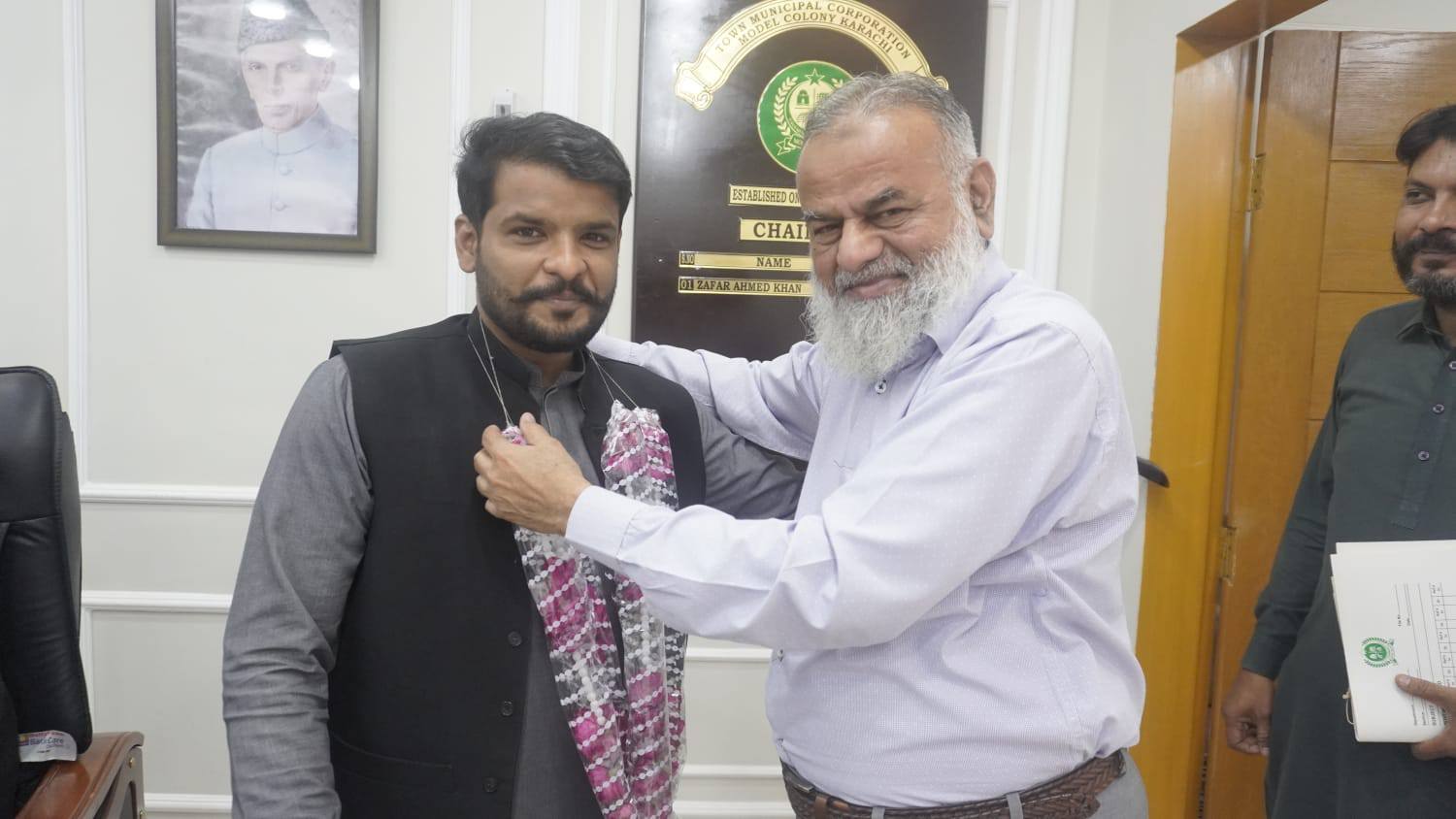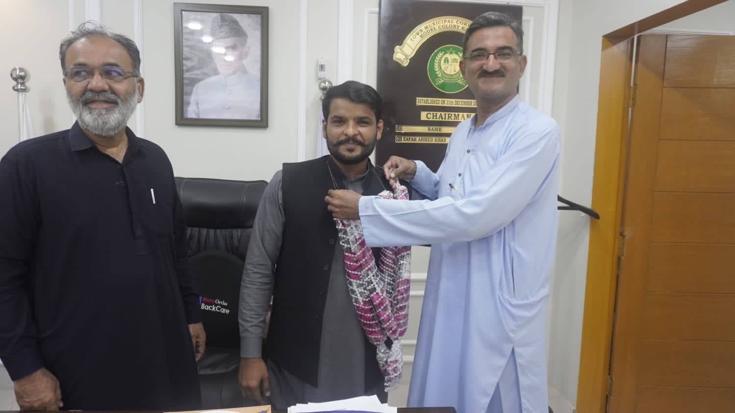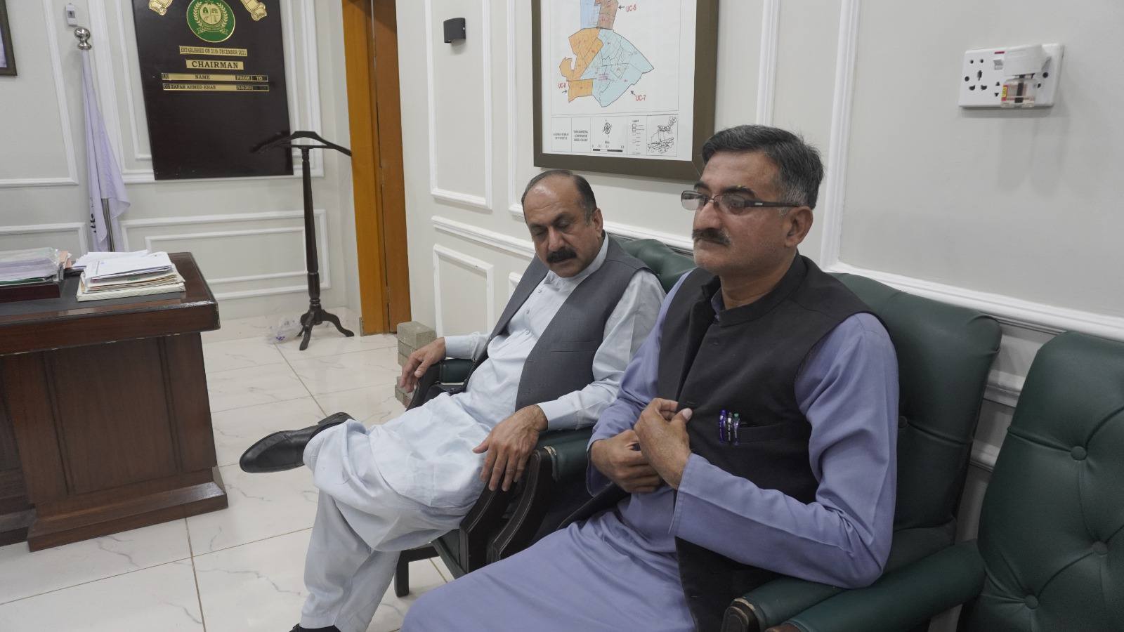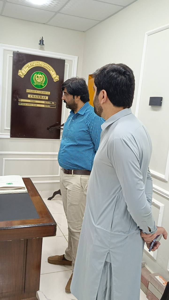 چیئرمین ٹاؤن میونسپل کارپوریشن ماڈل کالونی ظفر احمد خان کا ٹاؤن وائس چیئرمین فیصل باسط اور یوسی 5 چیئرمین طلحہ خان کے ہمراہ زکوٰۃ کمیٹی کے دفتر کا دورہ۔