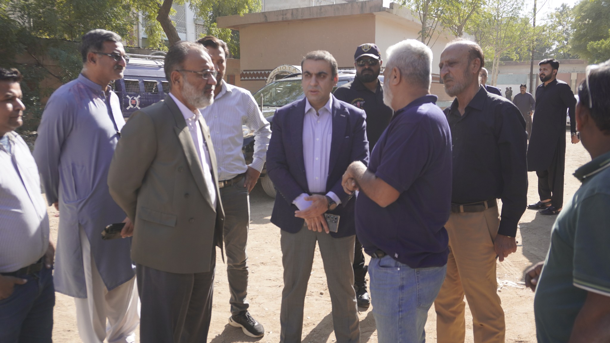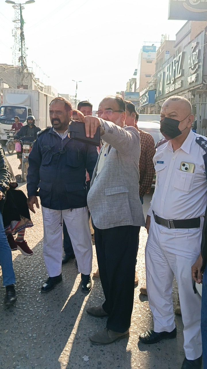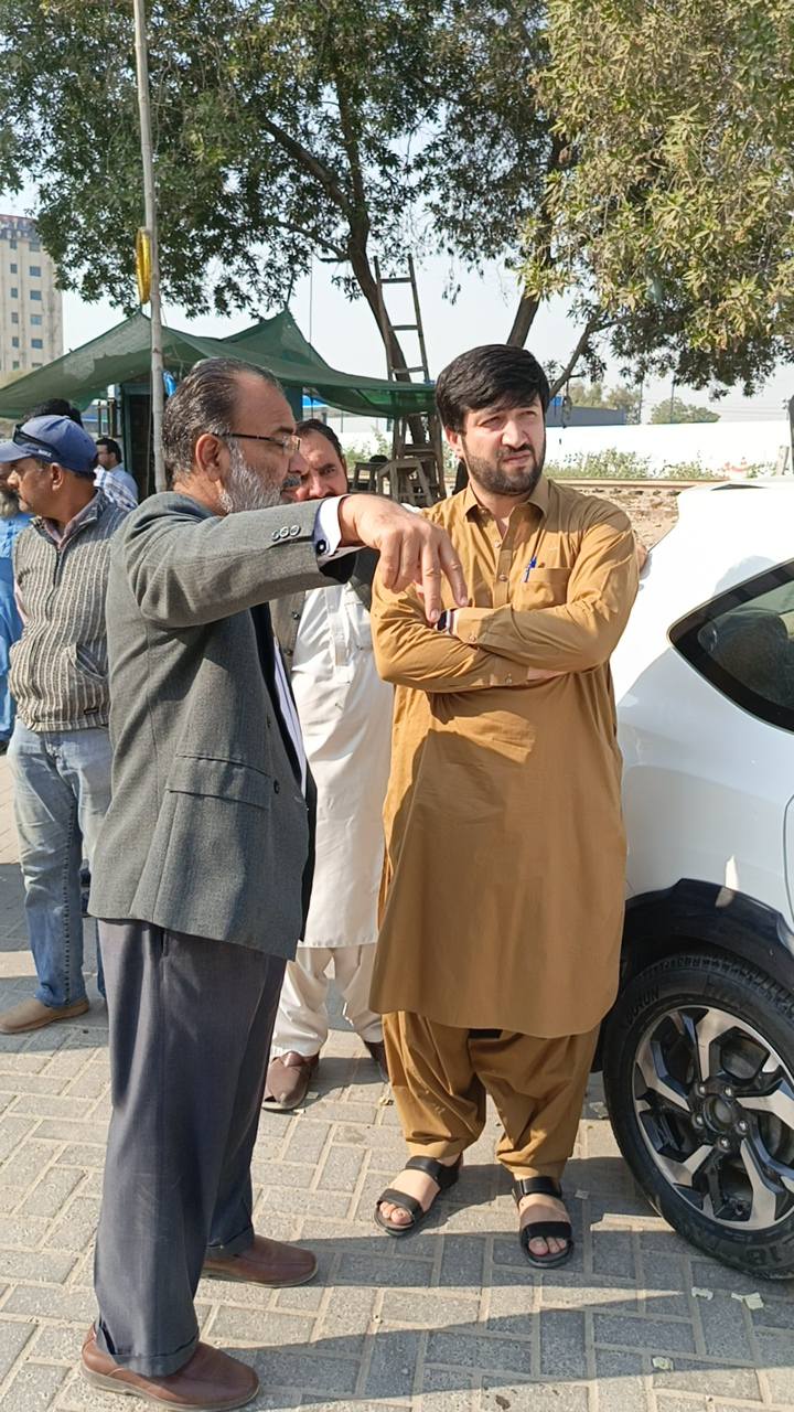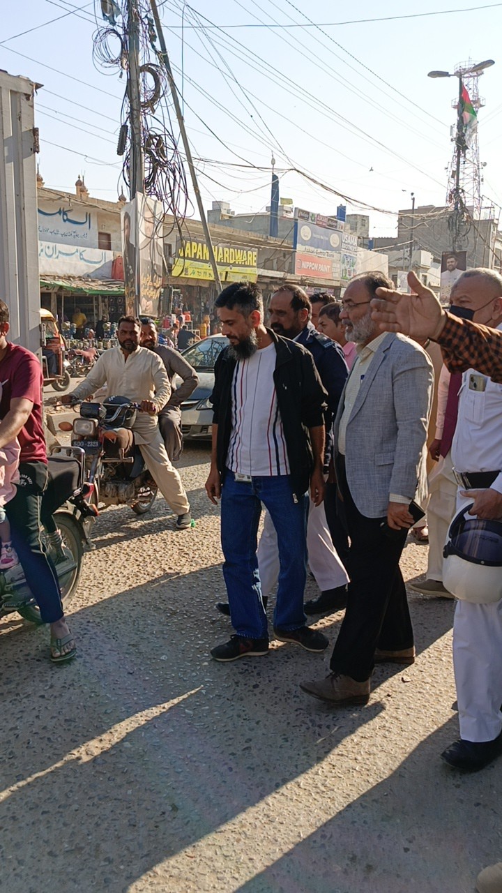 چیئرمین ٹاؤن میونسپل کارپوریشن ماڈل کالونی ظفر احمد خان کا ماڈل کالونی ٹریفک پولیس افسران کے ہمراہ آر سی ڈی گراؤنڈ چوراہے کا دورہ۔
