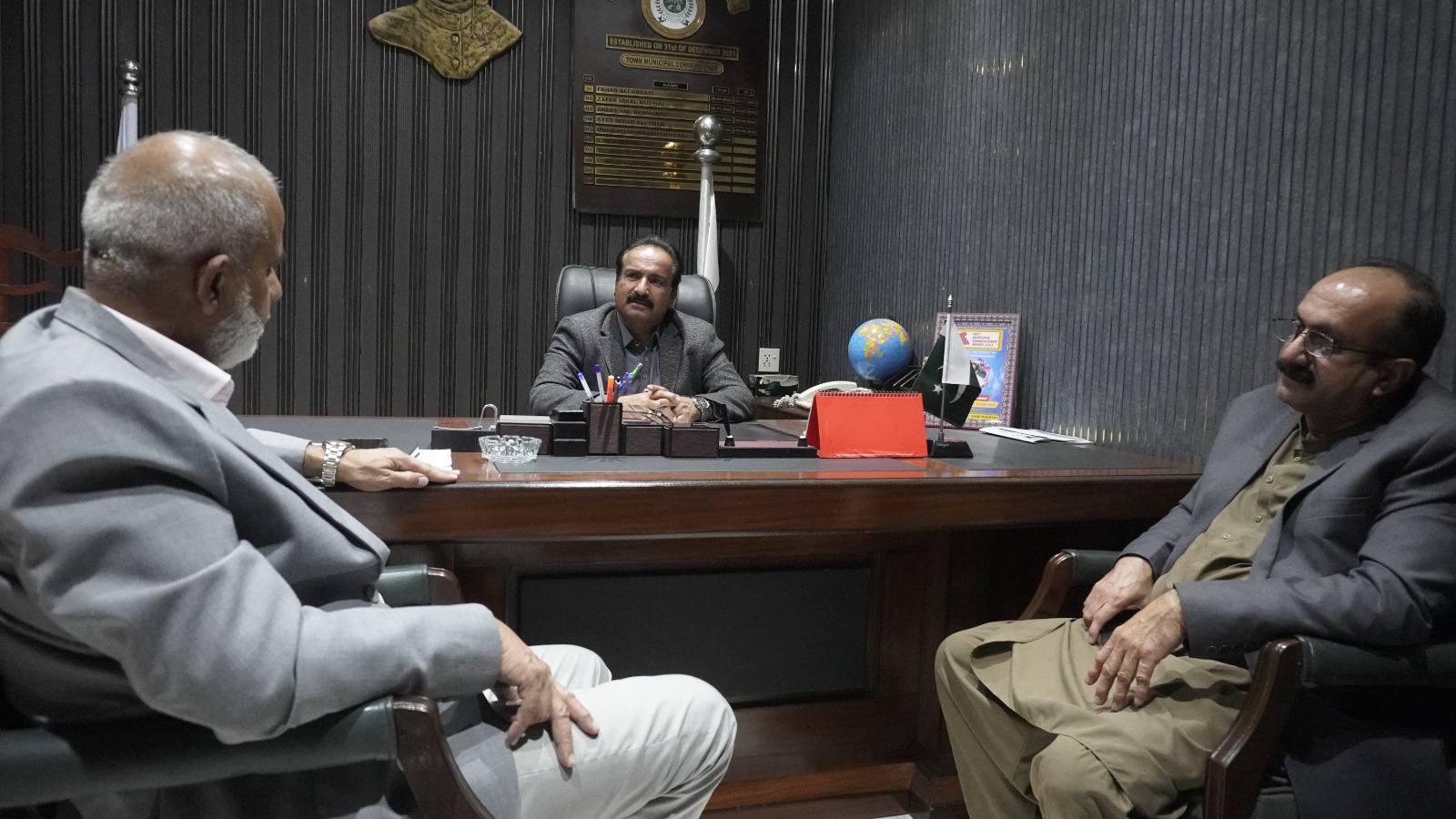 چیئرمین ٹاؤن میونسپل کارپوریشن ماڈل کالونی ظفر احمد خان کی ہدایت پر ٹاؤن میونسپل کمشنر محمد ابراہیم عمرانی کی سوئی سدرن گیس کمپنی کے اعلیٰ سطح وفد سے ملاقات۔