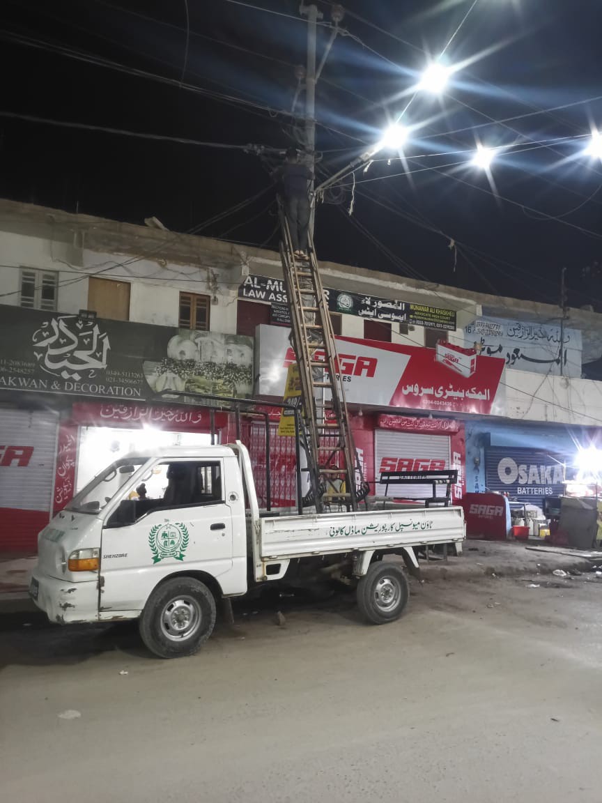 سعودآباد تا شہید چوک پمپنگ اسٹیشن کھوکھراپار 1 نمبر روڈ پر، بی ایریا مین روڈ پر، سعود آباد تا جناح اسکوائر روڈ پر نئی لائٹس کی تنصیب کردی گئی