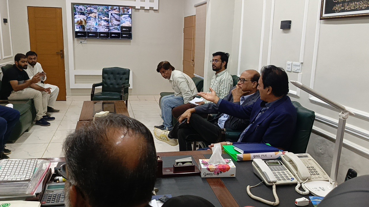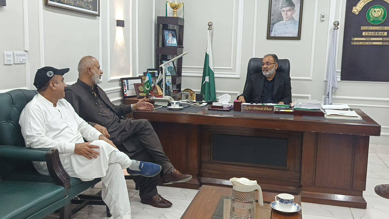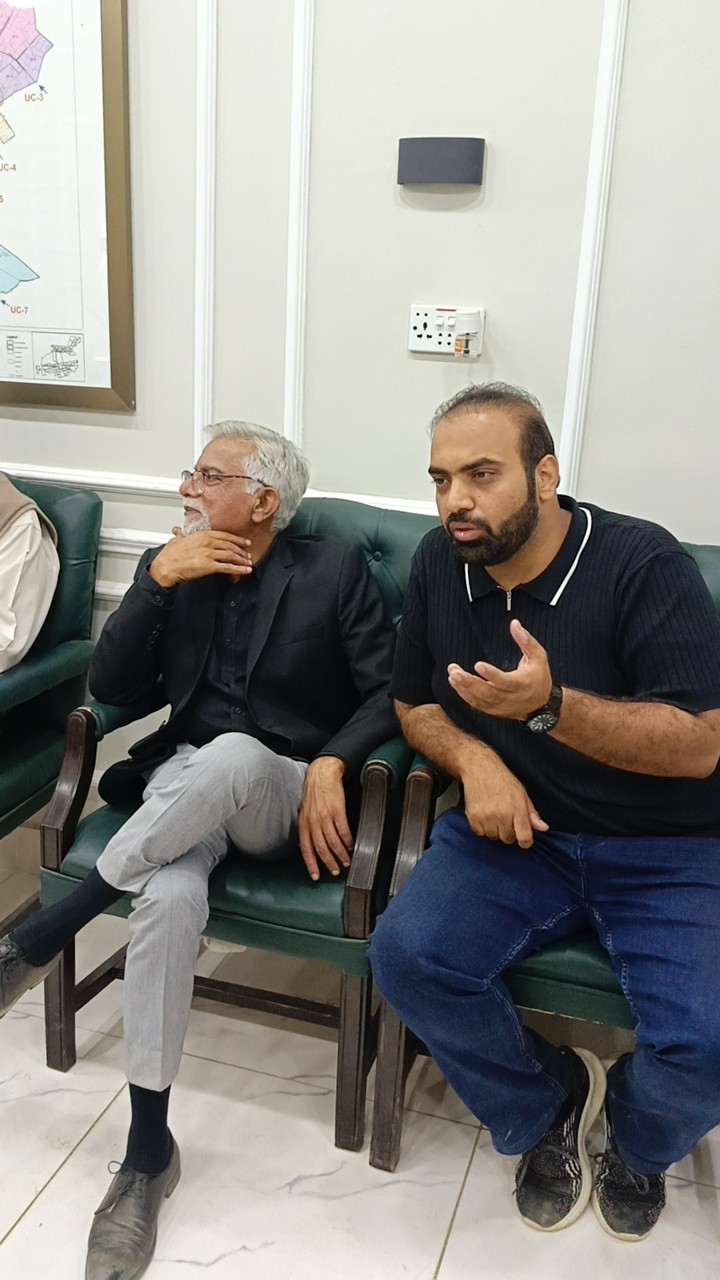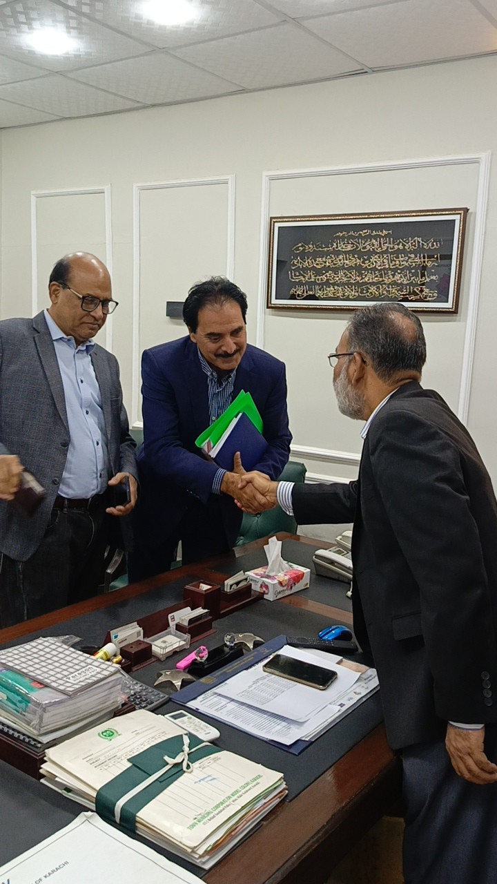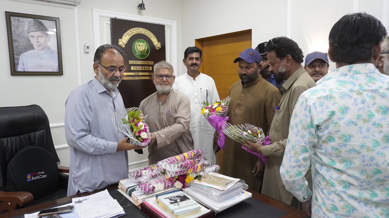 ظفر احمد خان چیئرمین ماڈل کالونی ٹاؤن سے سندھ سالڈ ویسٹ مینجمنٹ بورڈ کے افسران کی ملاقات۔