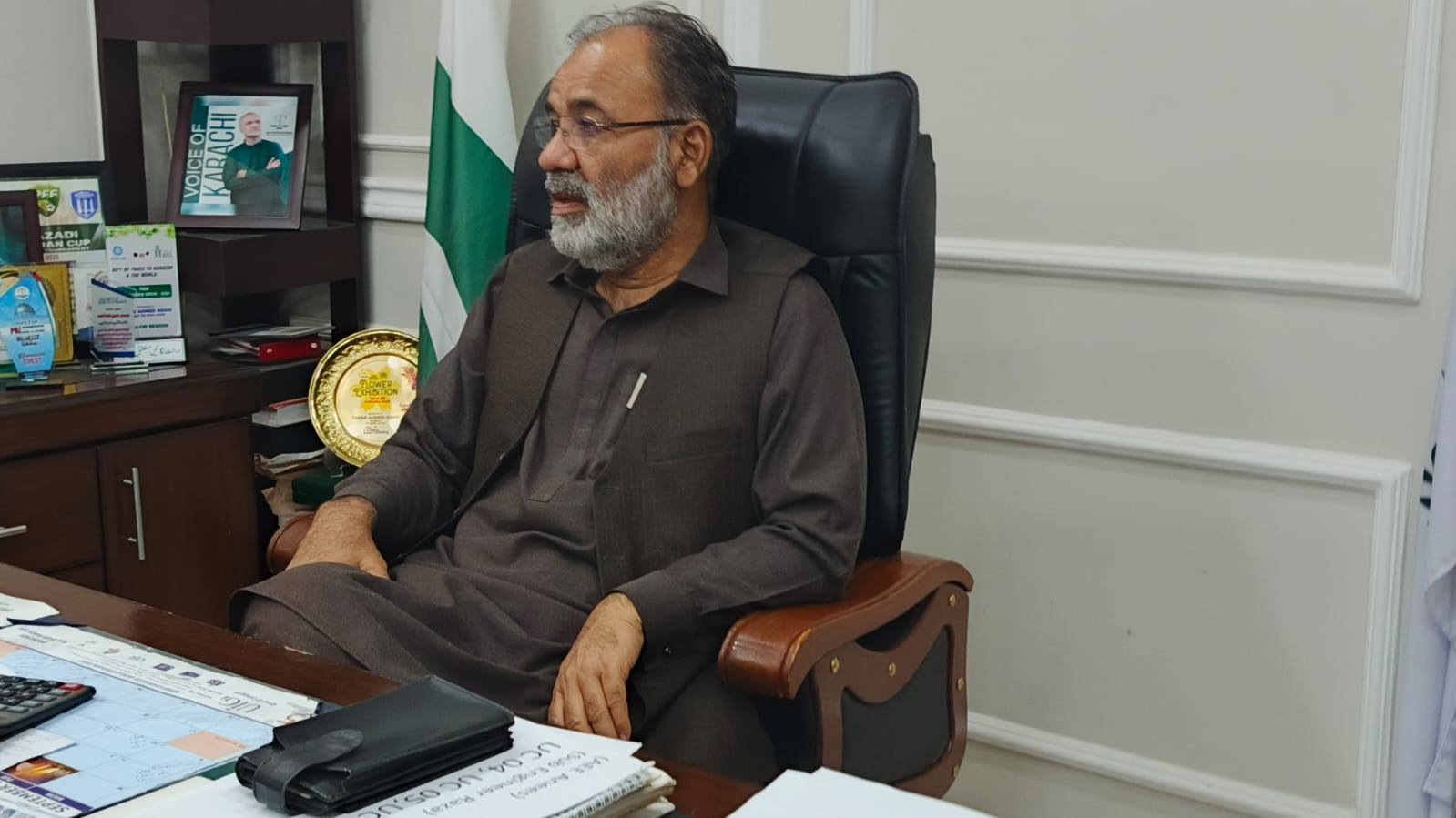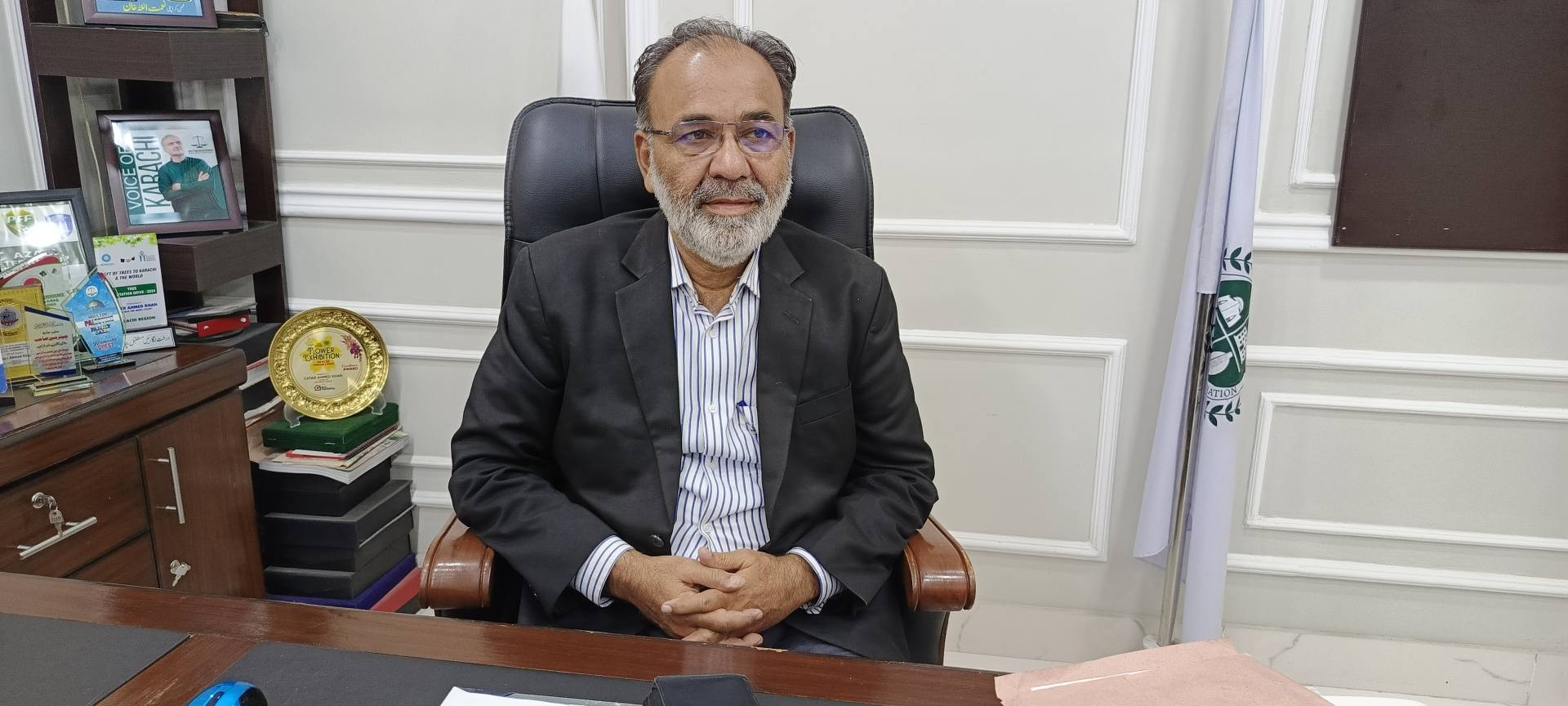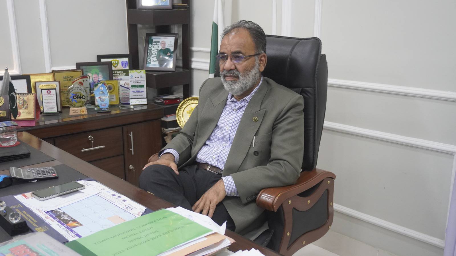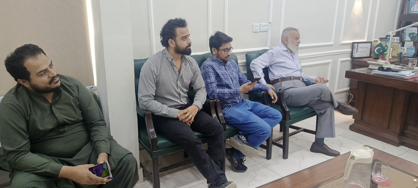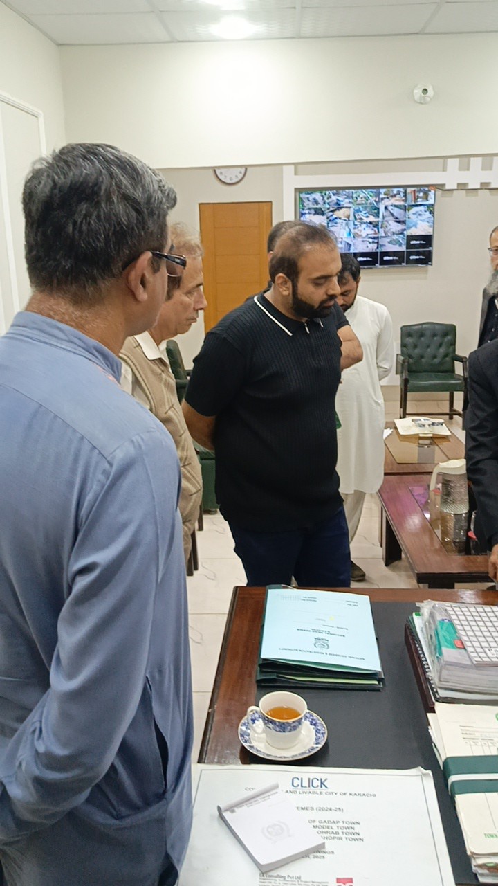 ظفر احمد خان چیئرمین ماڈل کالونی ٹاؤن سے سندھ سالڈ ویسٹ مینجمنٹ بورڈ کے افسران کی ملاقات۔