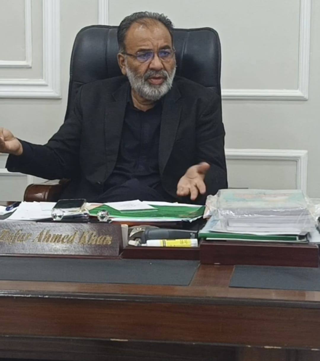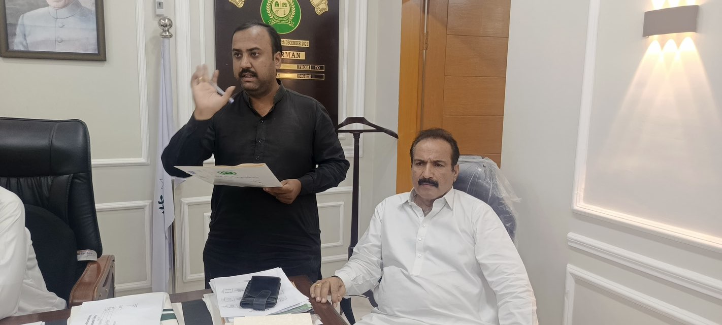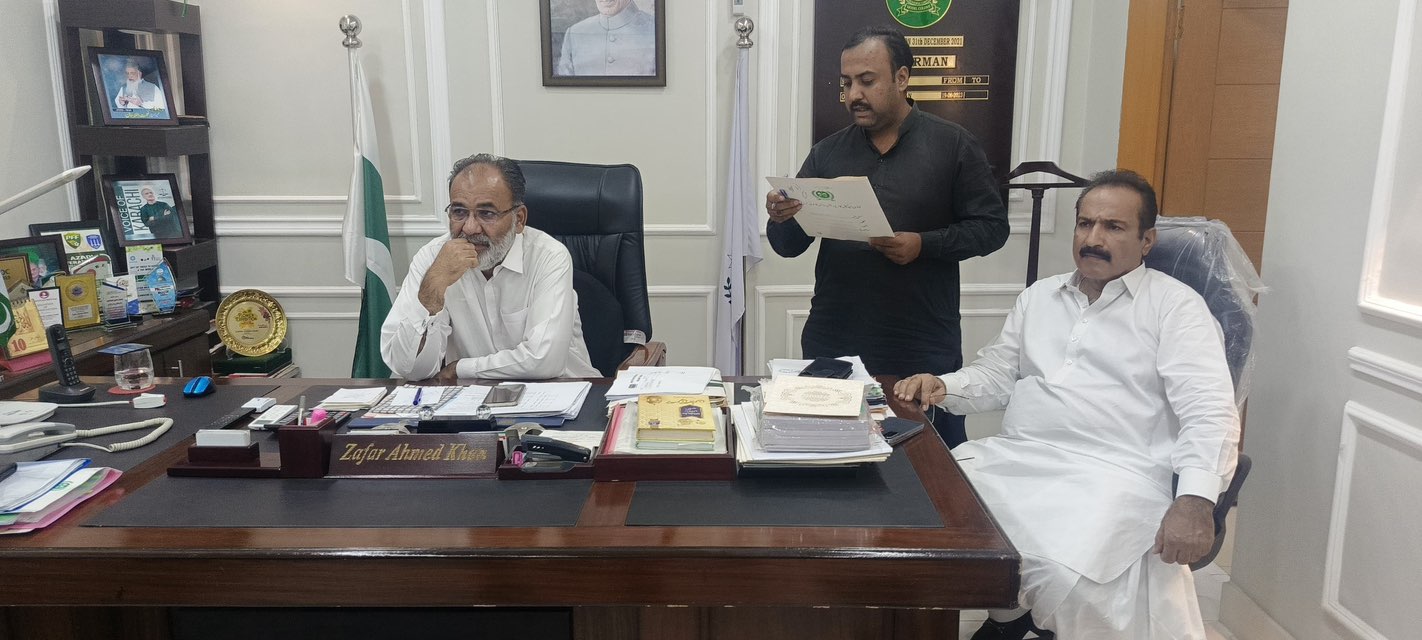 چیئرمین ٹاؤن میونسپل کارپوریشن ماڈل کالونی ظفر احمد خان کی ڈپٹی کمشنر آفس میں منعقدہ اجلاس میں شرکت۔