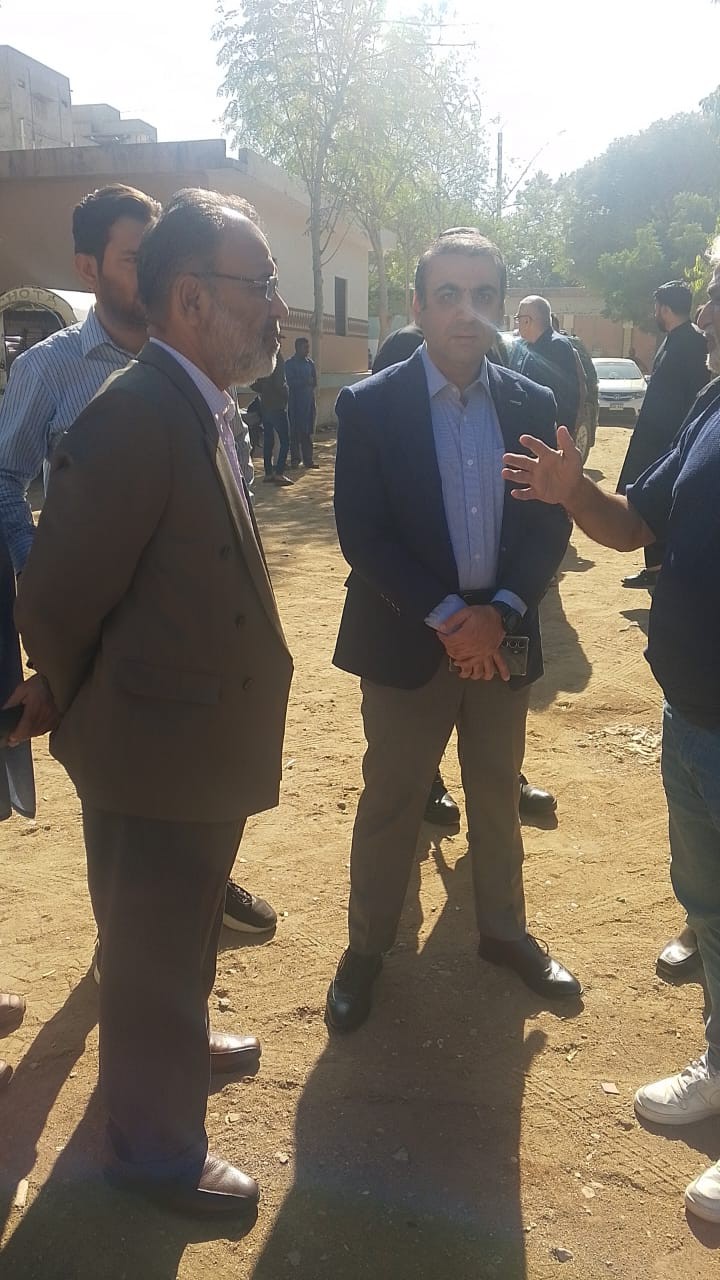 چیئرمین ٹاؤن میونسپل کارپوریشن ماڈل کالونی ظفر احمد خان، ٹاؤن وائس چیئرمین فیصل باسط، ٹاؤن میونسپل کمشنر سید امداد علی شاہ کا حسینی سفارتخانہ امام بارگاہ نزد آر سی ڈی کا دورہ پیور بلاک کی تنصیب کے کام کا جائزہ مورخہ19جون2025۔