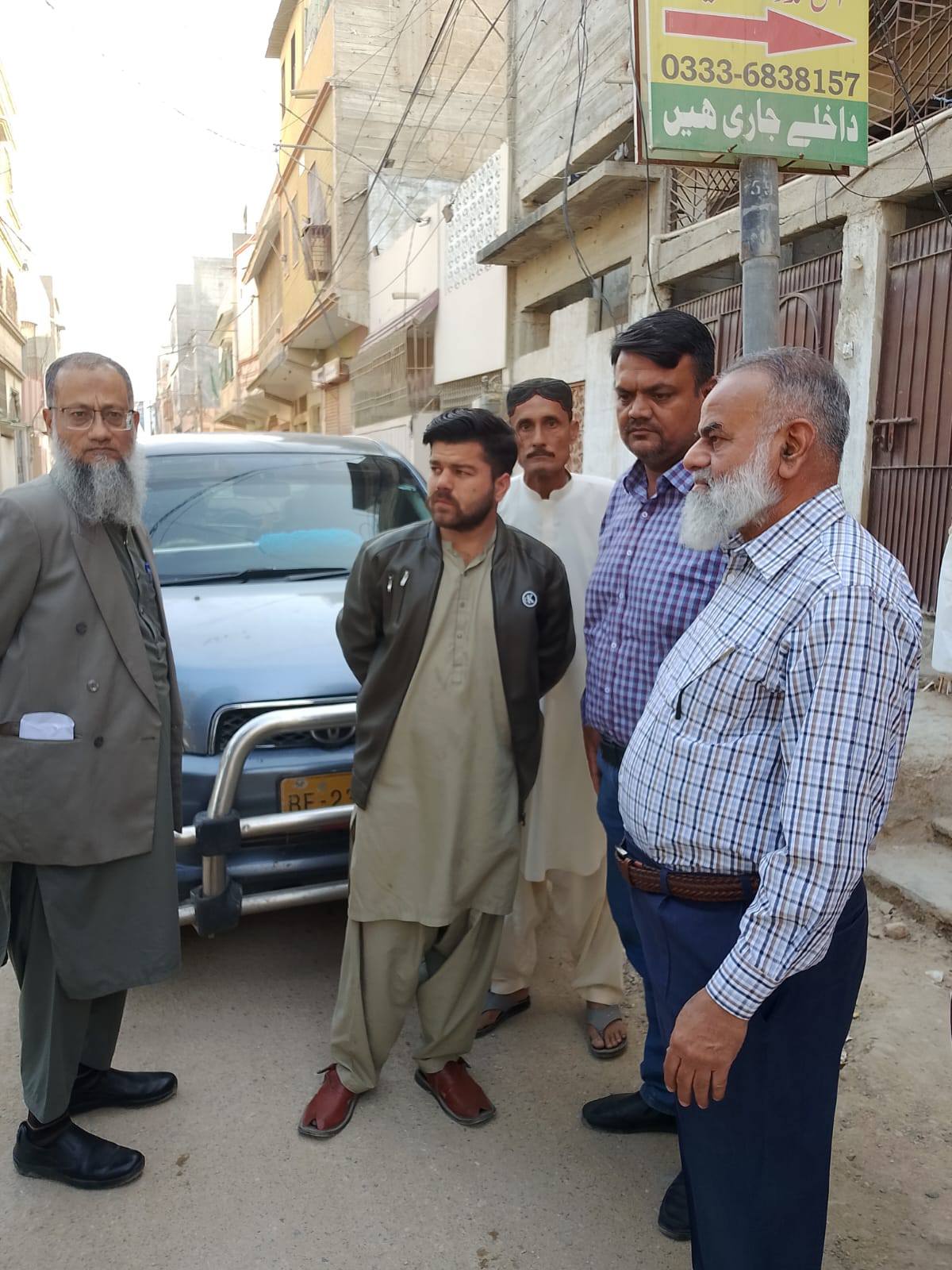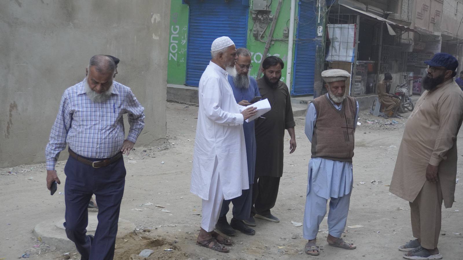 ٹاؤن وائس چیئرمین فیصل باسط، چیف کوآرڈینیٹر نجم الدین، کورآرڈینیٹر انجینئر محمد زکی الدین، والنٹیئر آرکیٹیکچر محمد عثمان کا یوسی 8 چیئرمین احسن ضمیر، وائس چیئرمین احمد سلمان کاشف، کونسلر اظہر جاوید کے ہمراہ یوسی 8 کا دورہ۔
