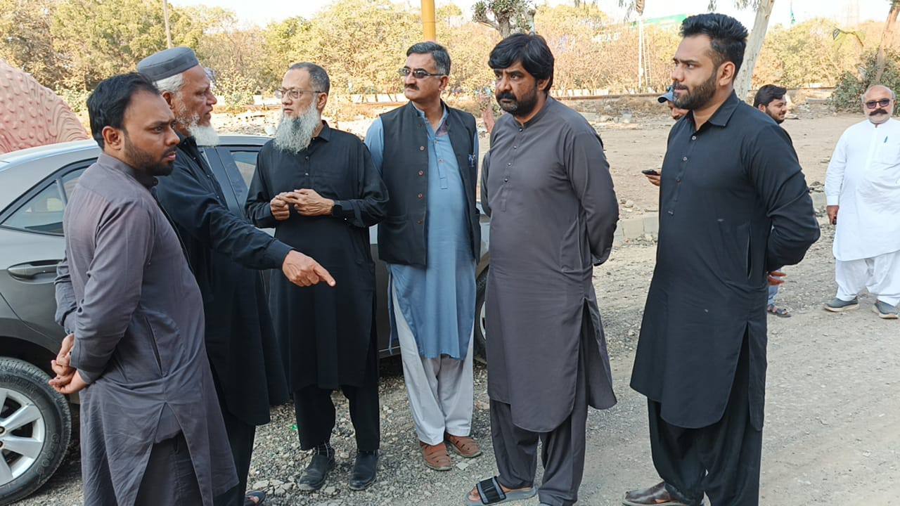 ٹاؤن چیئرمین ظفر احمد خان کا امیر جماعت اسلامی ضلع ائیرپورٹ محمد اشرف، چیف کوآرڈینیٹر نجم الدین کے ہمراہ زیر تعمیر پارک کا دورہ۔