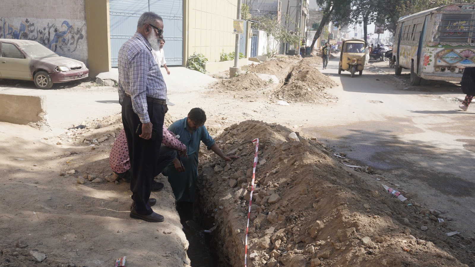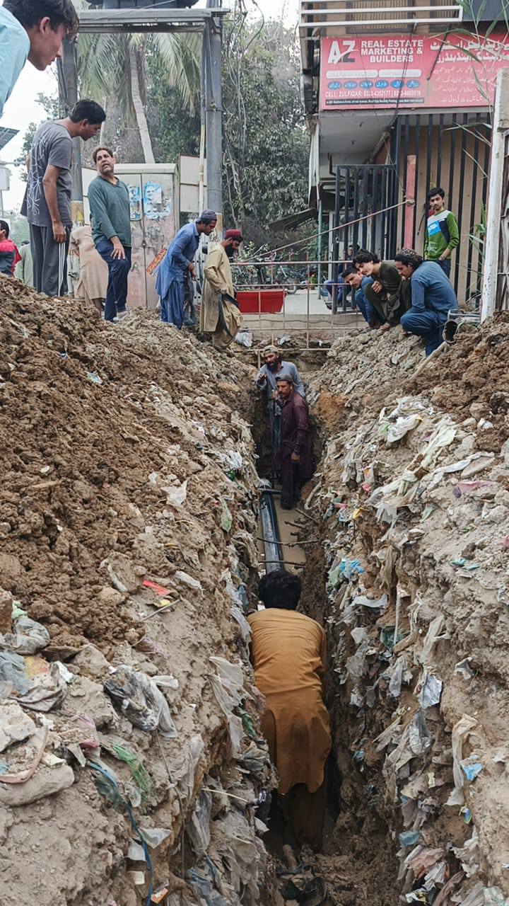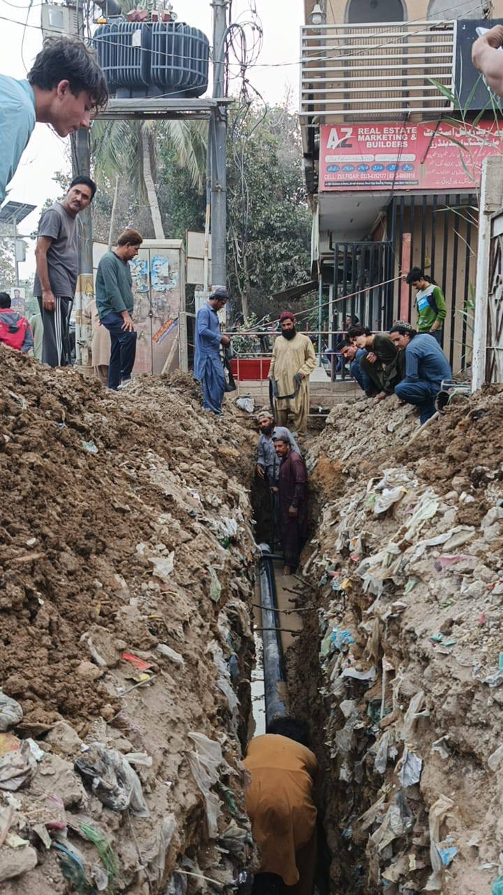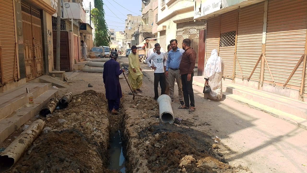 ٹاؤن چیئرمین ظفر احمد خان، ٹاؤن وائس چیئرمین فیصل باسط، یوسی 5 چیئرمین طلحہ خان کی ہدایت پر یوسی 5 قادریہ مسجد روڈ پر سیوریج پائپ لائنوں کی تنصیب کے کام کا آغاز کردیا گیا۔