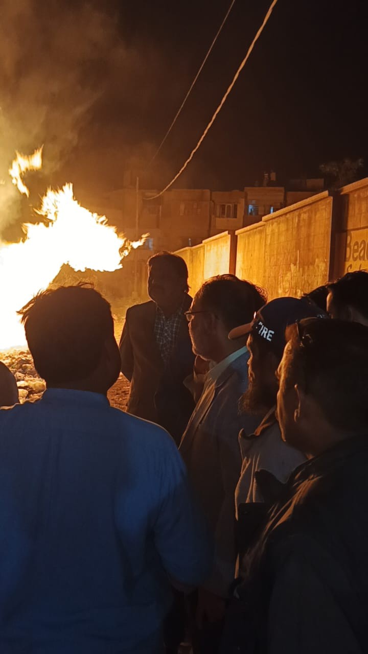 ماڈل کالونی ٹاؤن یوسی 4 آفس کے نزدیک کچرا کنڈی کے اطراف زیر زمین سوئی گیس کی سپلائی لائن کی لیکج کے باعث گیس کا اخراج ہو رہا تھا