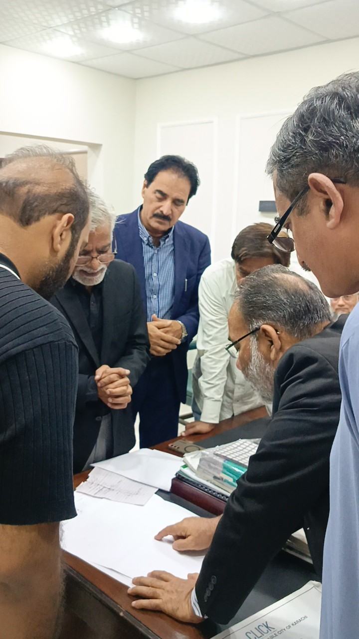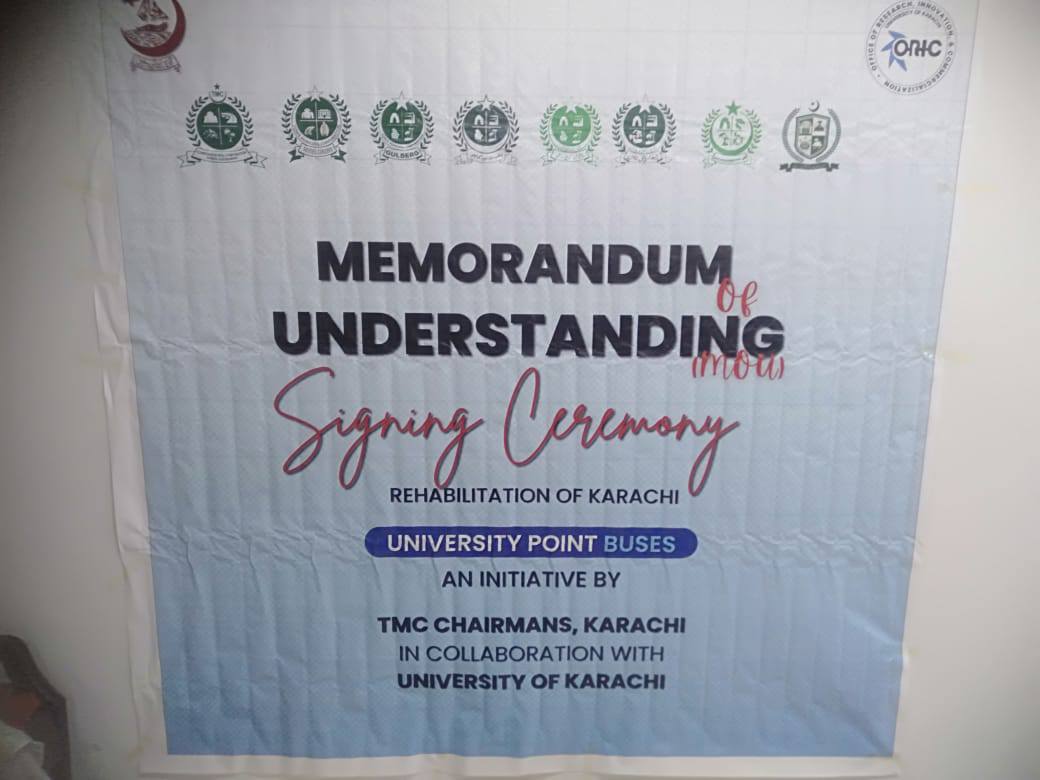 وائس چانسلر کراچی یونیورسٹی پروفیسر ڈاکٹر خالد محمود عراقی اور جماعت اسلامی کراچی کے 8 ٹاؤنز چیئرمینز کے درمیان میمورینڈم آف انڈر اسٹینڈنگ پر دستخط کرنے کی تقریب جامعہ کراچی میں منعقد ہوئی