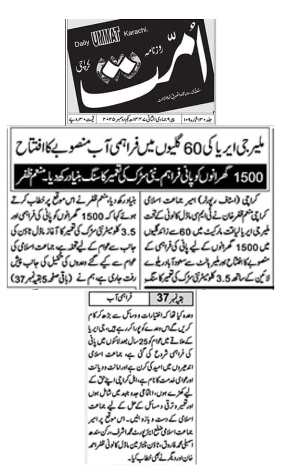 ٹاؤن چیئرمین ظفر احمد خان کی نگرانی میں ٹوکن اسٹاپ کے مقام پر 18 انچ پانی کی لائن کی مرمت اور نئے وال کی تنصیب کردی گئی۔