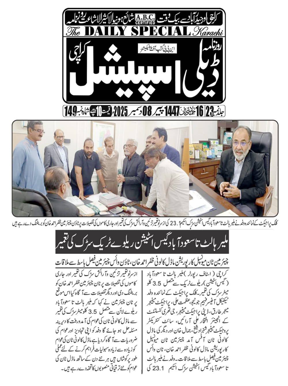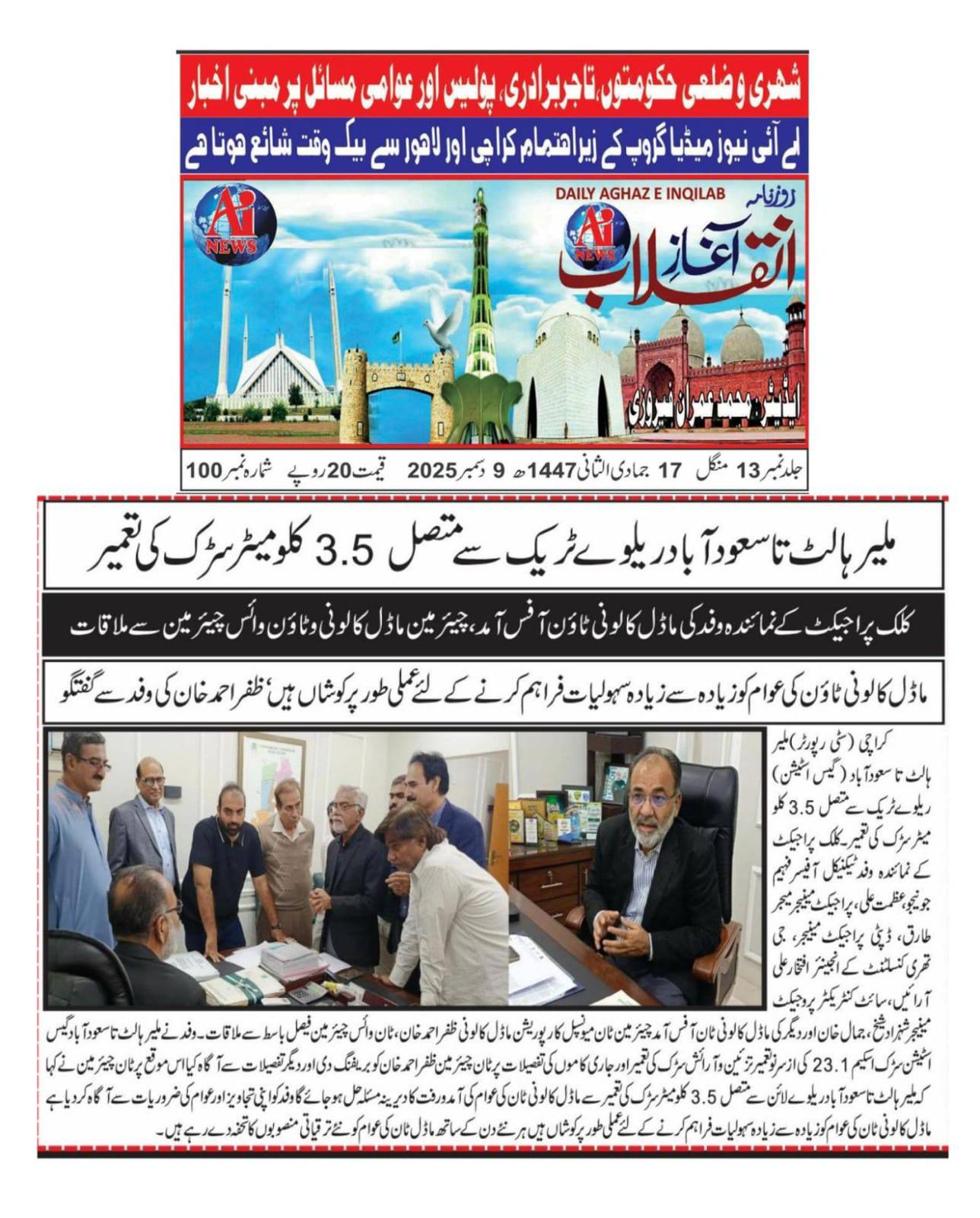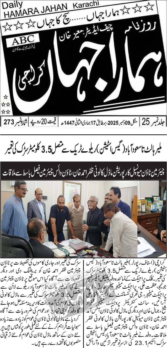 ماڈل کالونی ٹاؤن نے ملیر ہالٹ تا سعودآباد ساڑھے تین کلو میٹر طویل ریلوے ٹریک روڈ کی تعمیر کا اعلان کردیا
