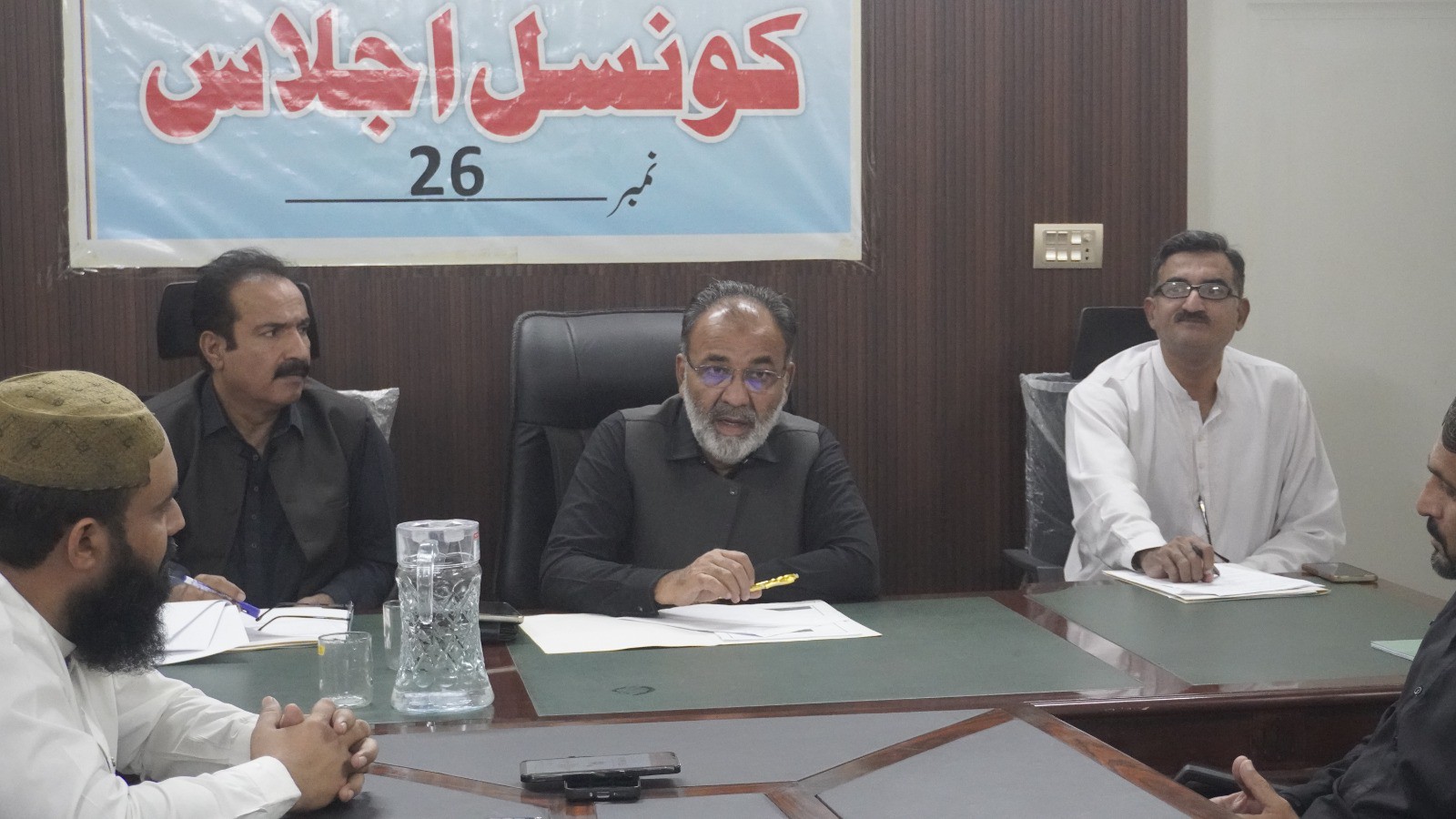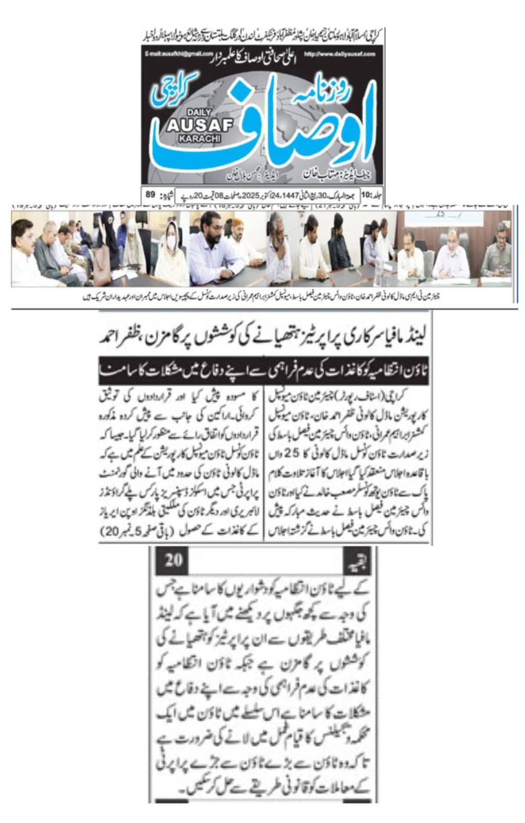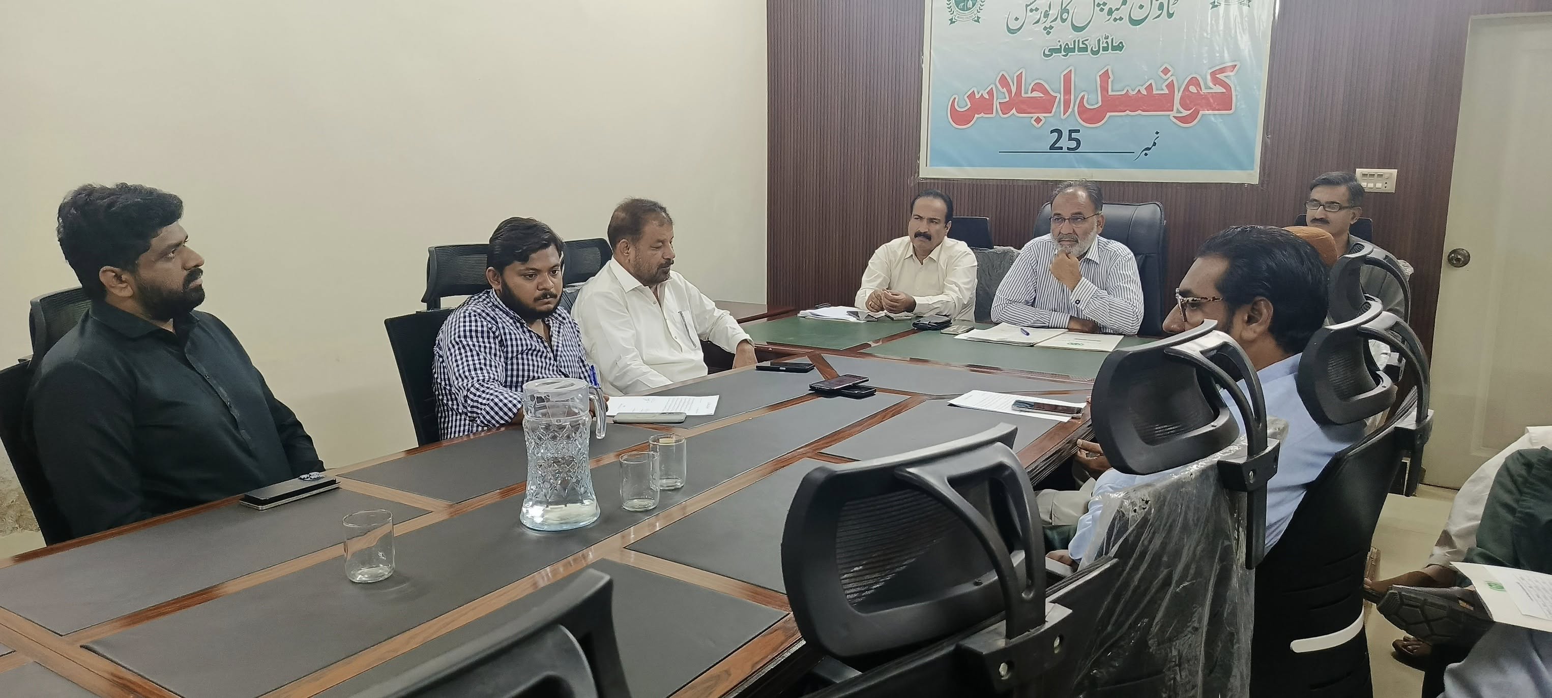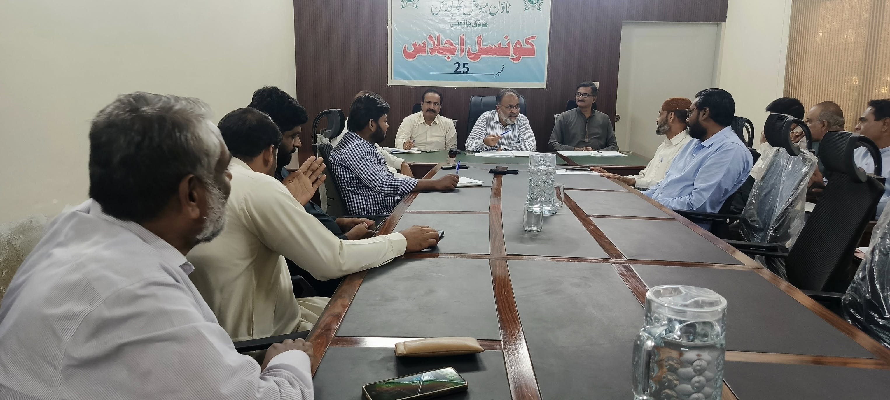 ٹاؤن چیئرمین ظفر احمد خان کی ہدایت پر ٹاؤن وائس چیئرمین اور واٹر اینڈ سیوریج کمیٹی کے چیئرمین فیصل باسط کی زیرِ صدارت اجلاس منعقد کیا گیا۔
