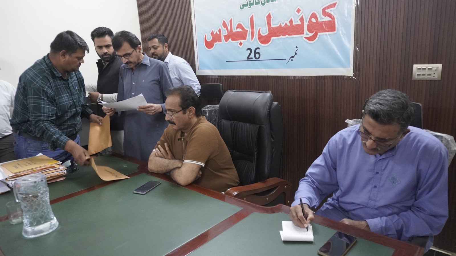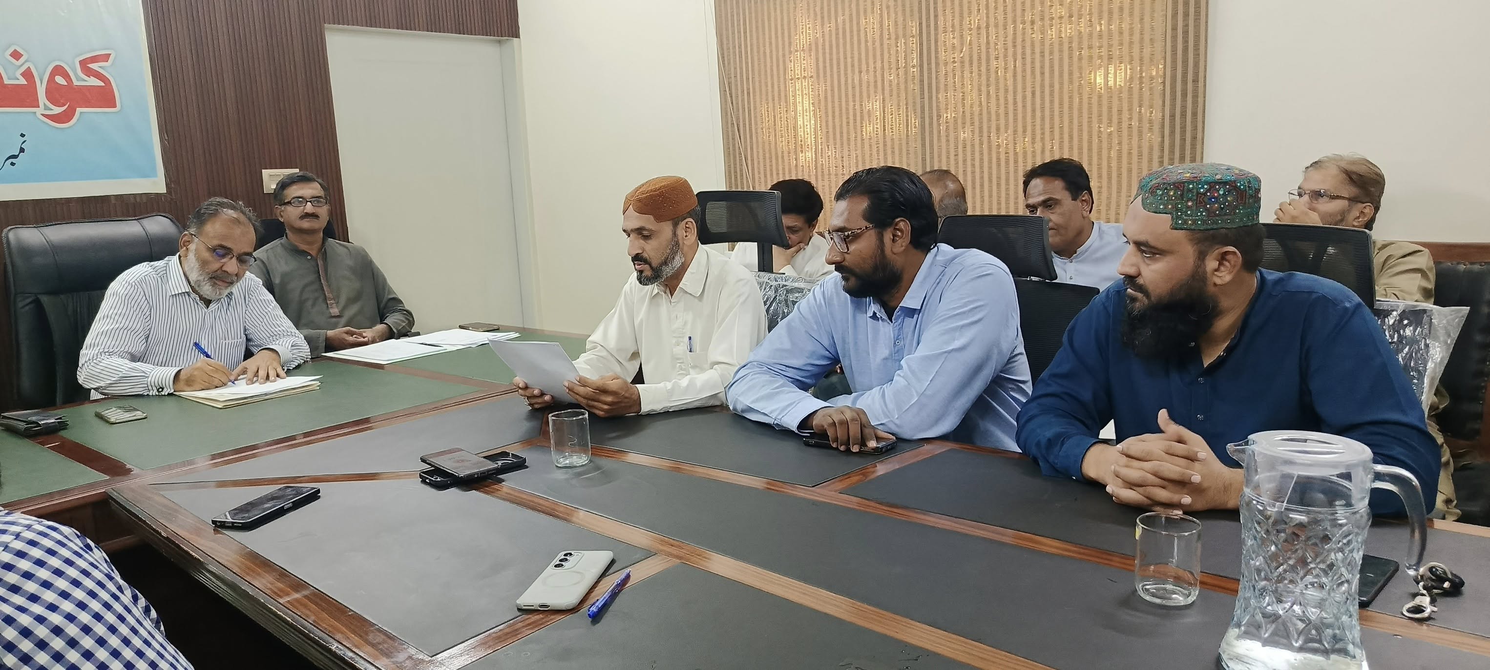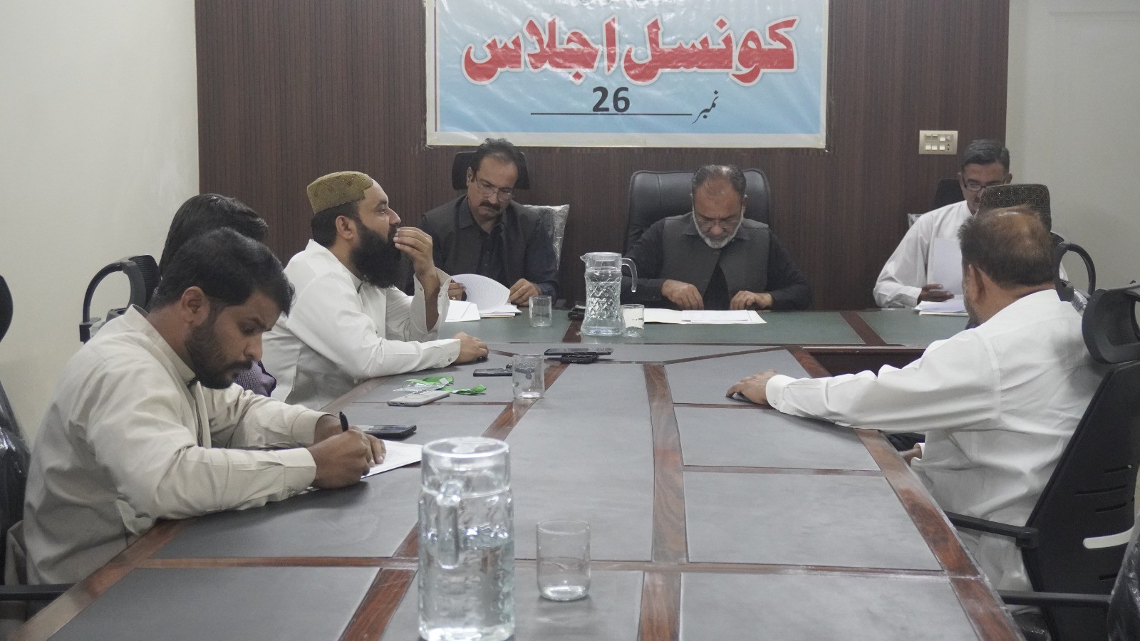ٹاؤن چیئرمین ظفر احمد خان کی ہدایت پر ٹاؤن وائس چیئرمین اور واٹر اینڈ سیوریج کمیٹی کے چیئرمین فیصل باسط کی زیرِ صدارت اجلاس منعقد کیا گیا۔