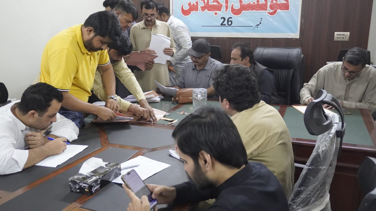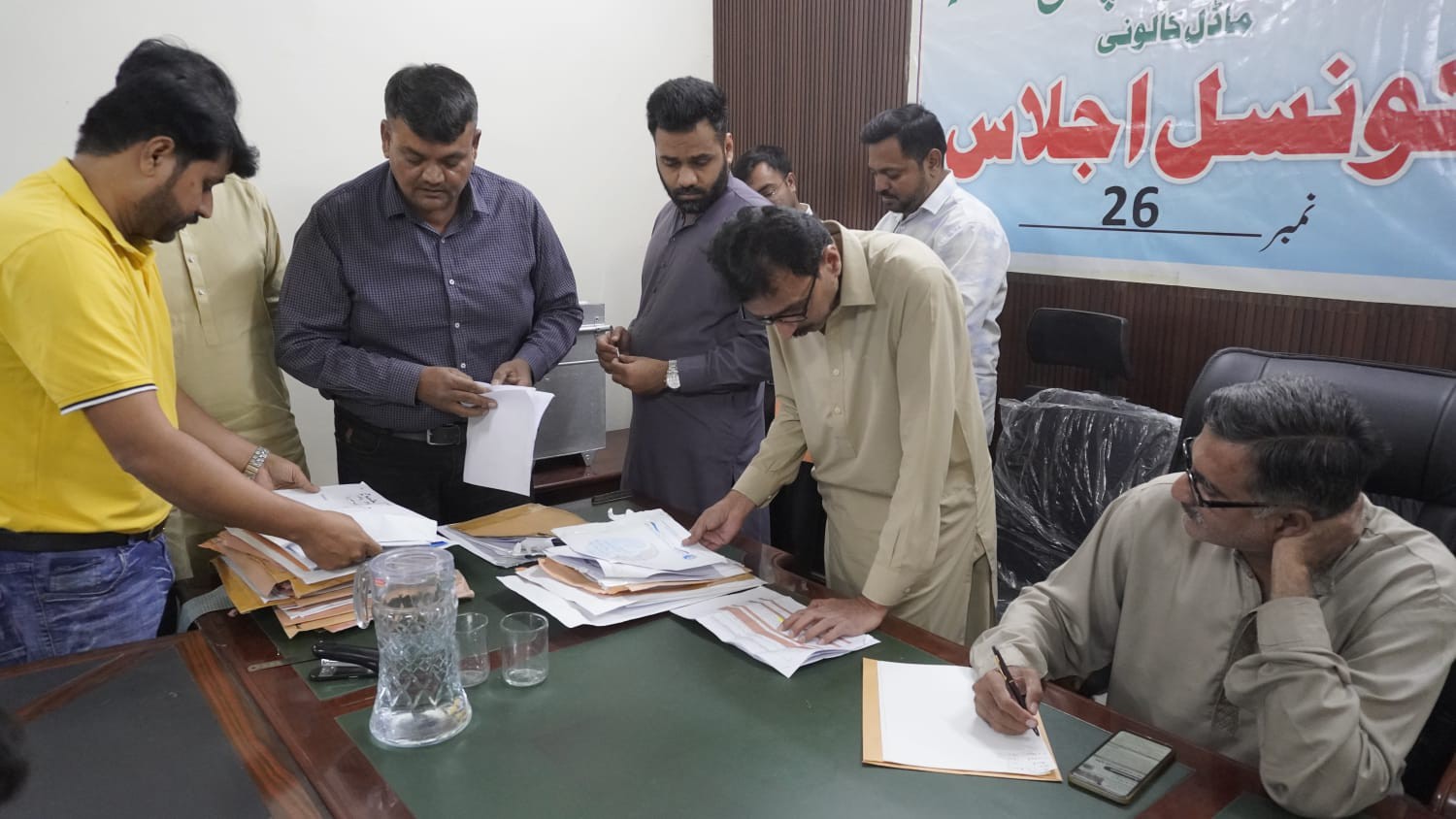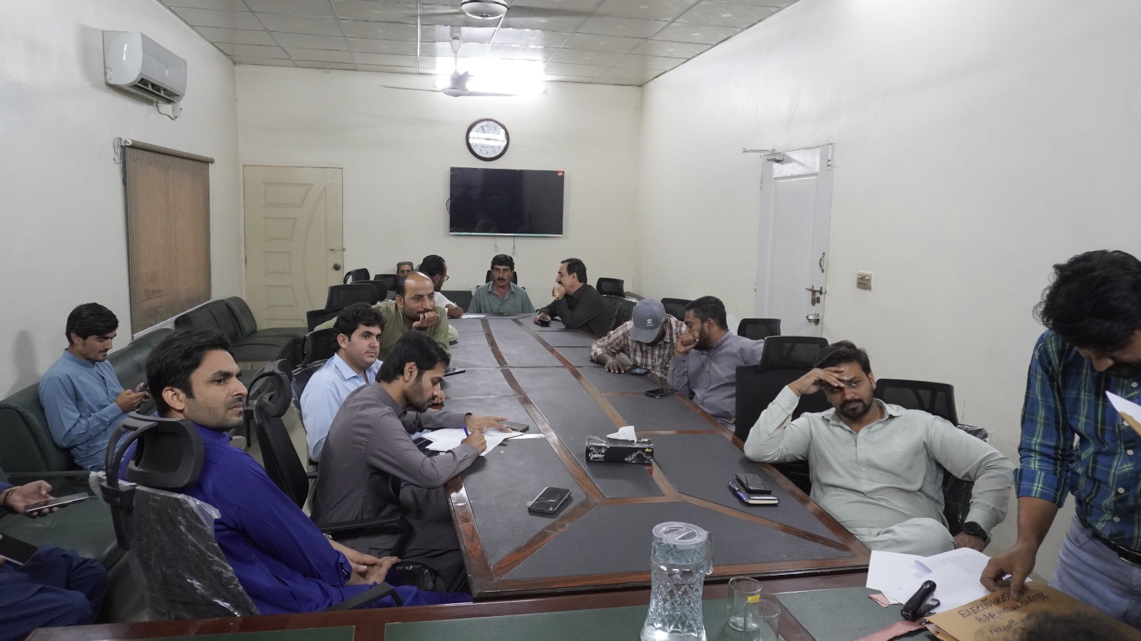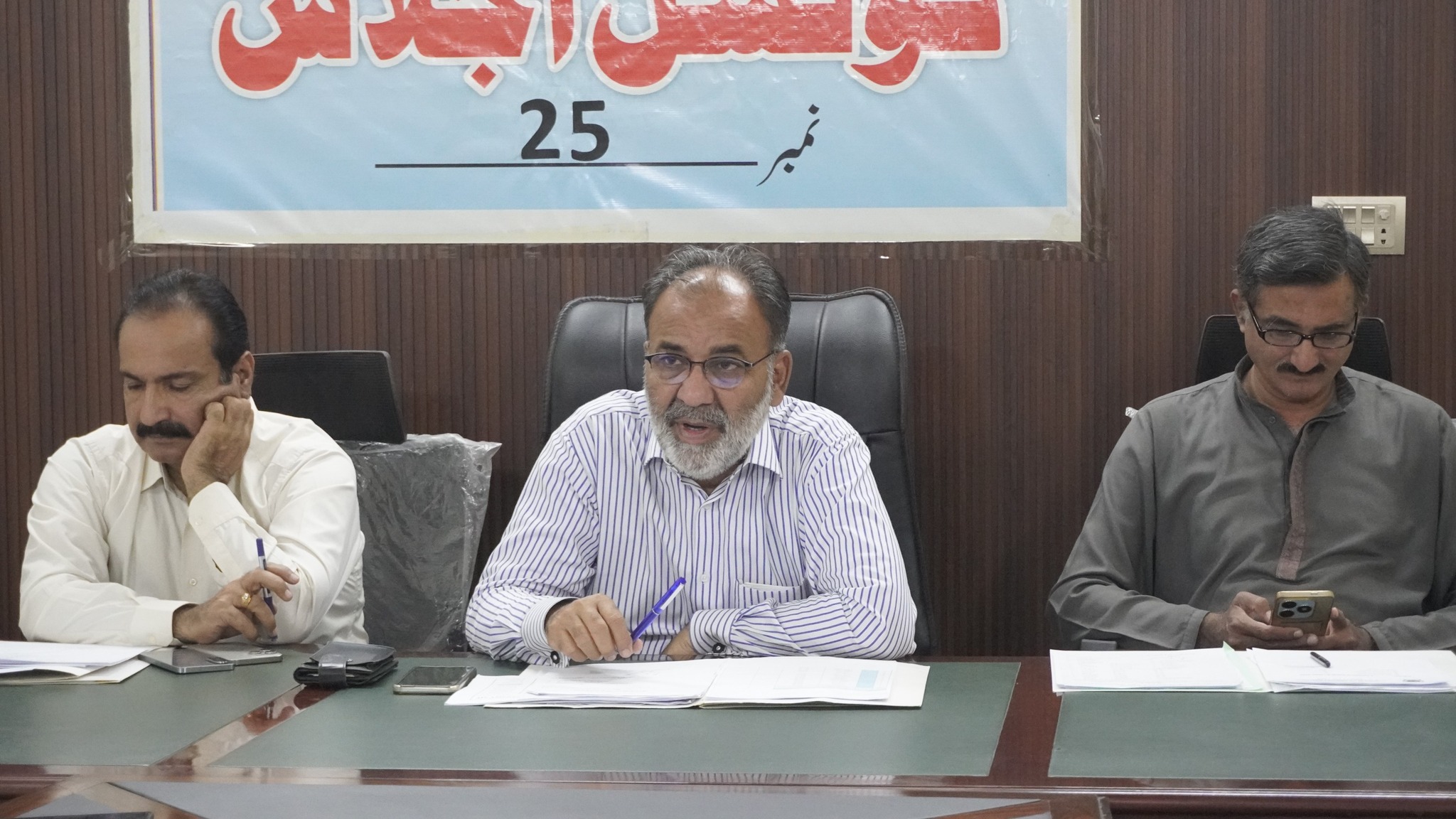 ٹاؤن چیئرمین ظفر احمد خان کی ہدایت پر ٹاؤن وائس چیئرمین اور واٹر اینڈ سیوریج کمیٹی کے چیئرمین فیصل باسط کی زیرِ صدارت اجلاس منعقد کیا گیا۔