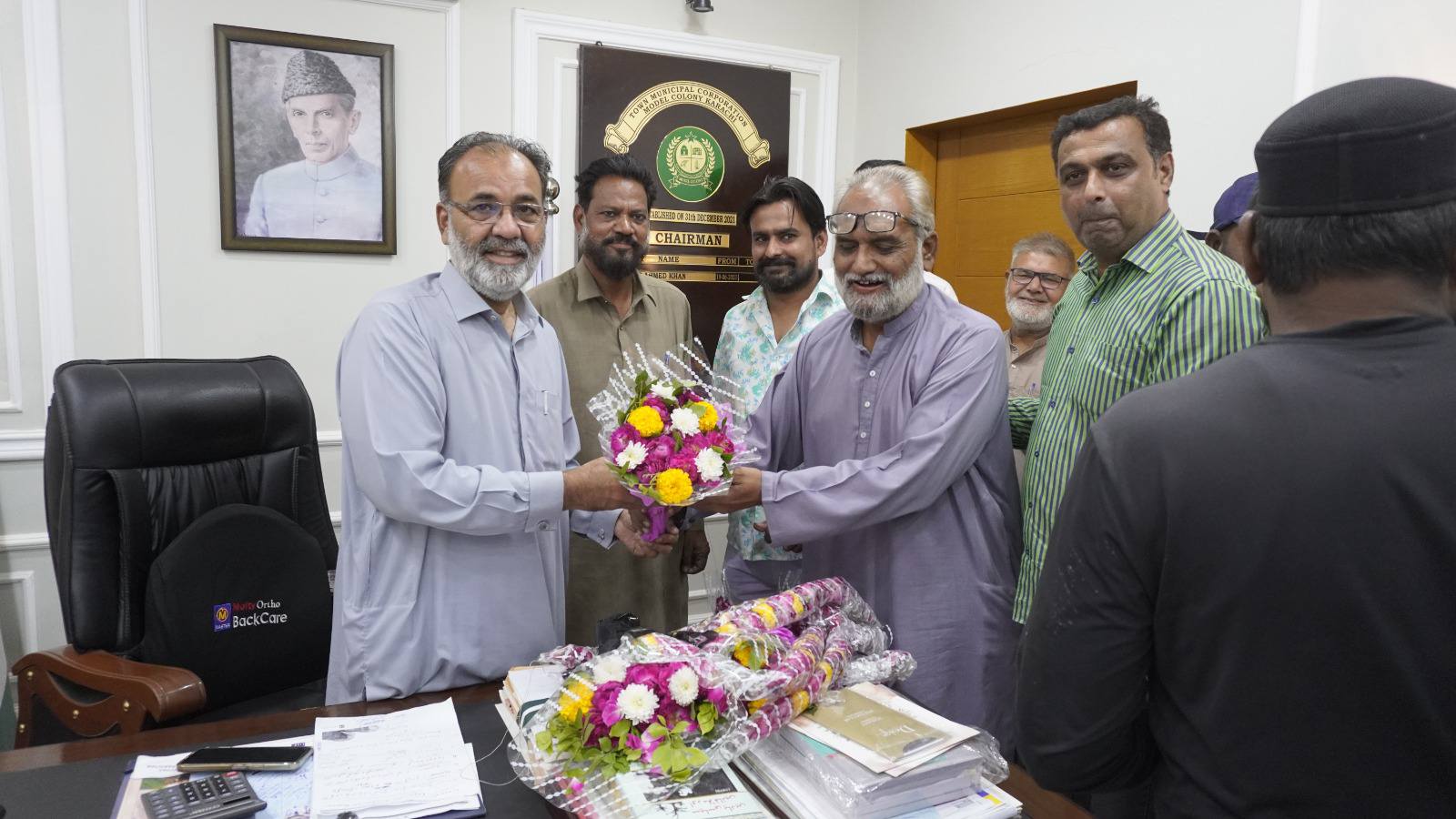 ریجنل ڈائریکٹر کراچی ایسٹ محتسب اعلیٰ سندھ سید فرخ حبیب کی چیئرمین ٹاؤن میونسپل کارپوریشن ماڈل کالونی ظفر احمد خان کے آفس آمد عوام الناس میں محتسب اعلیٰ کے حوالے سے آگاہی مہم کے لئے تبادلہ خیال۔