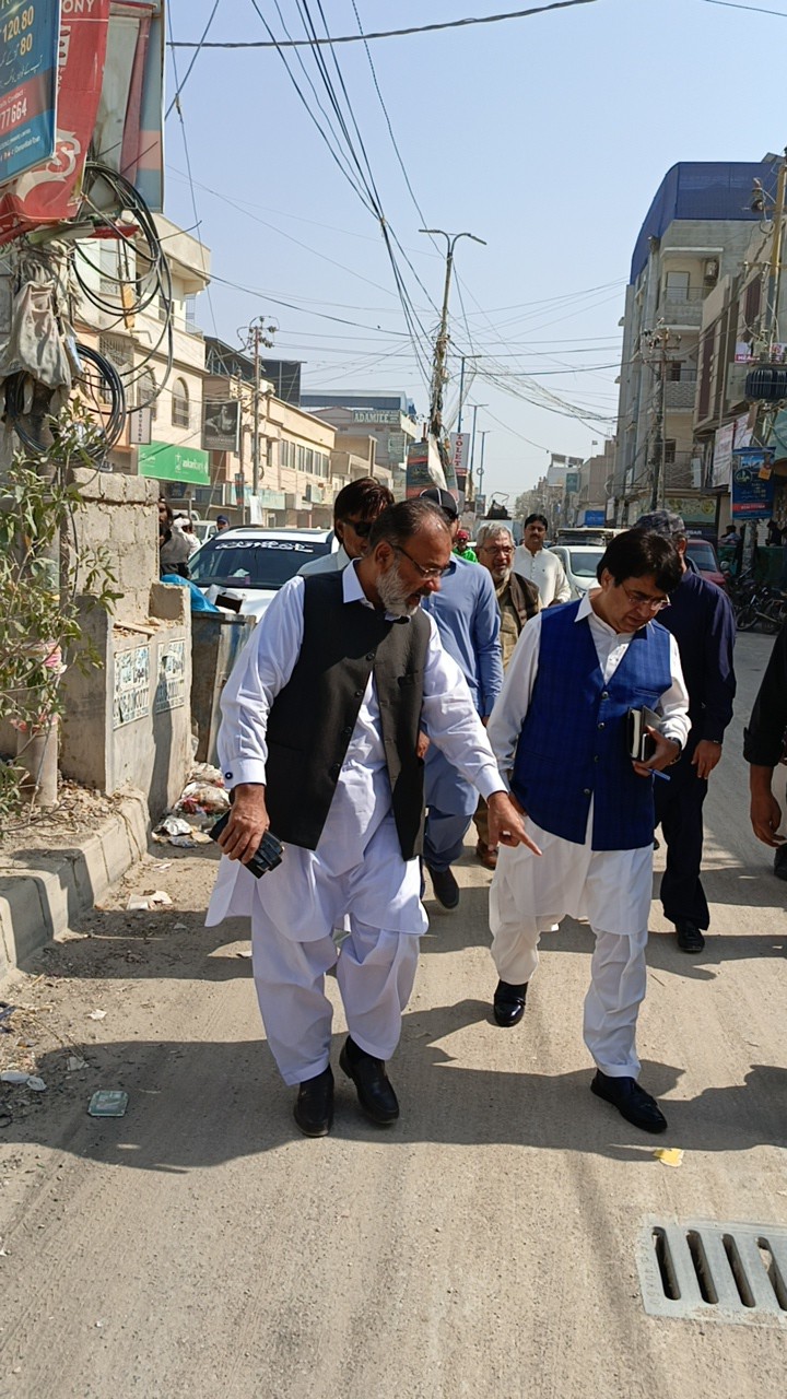 ٹاؤن چیئرمین ظفر احمد خان کی ہدایت پر ٹاؤن وائس چیئرمین فیصل باسط کا انجینئر محمد زکی الدین کے ہمراہ ماڈل کالونی ٹاؤن میں جاری ترقیاتی منصوبوں کا دورہ۔