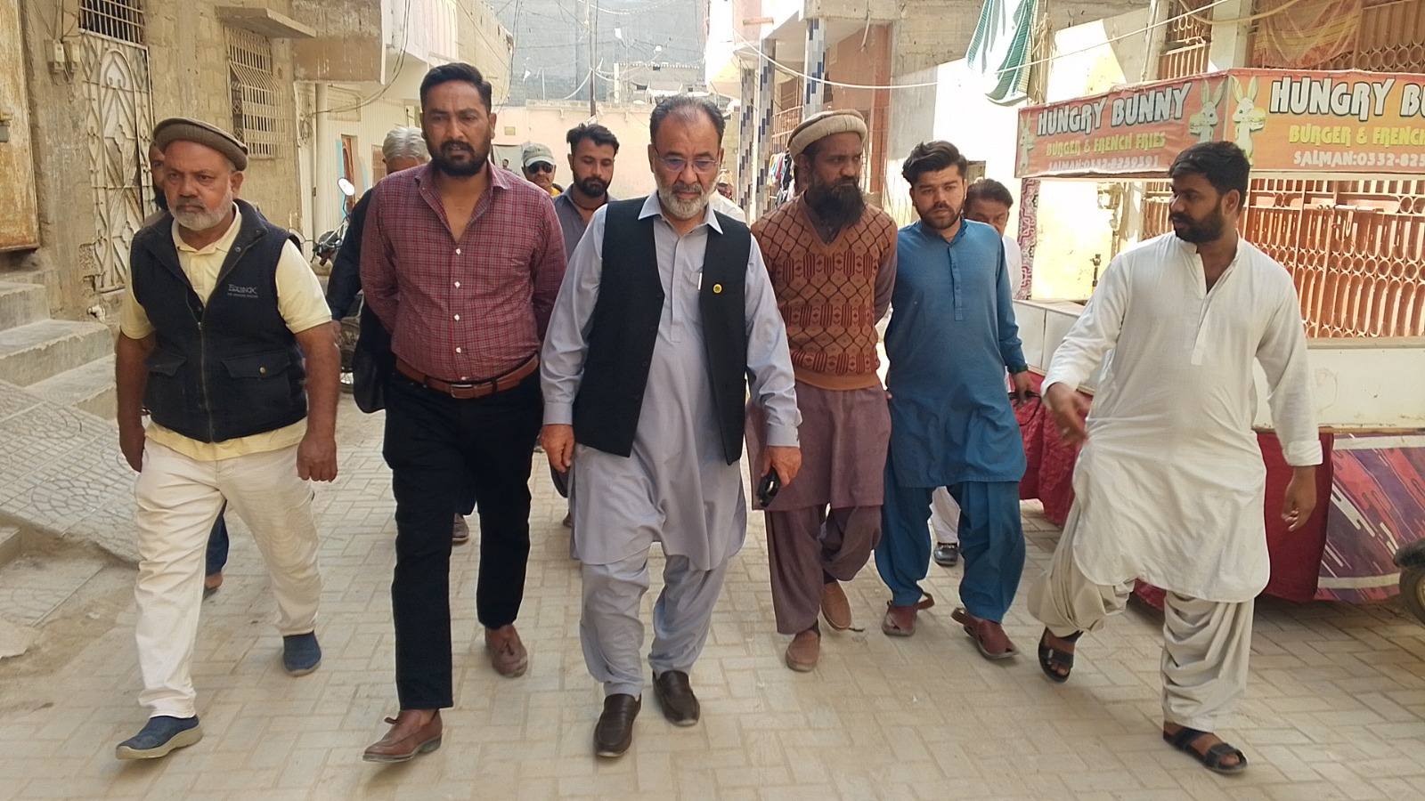 ٹاؤن چیئرمین ظفر احمد خان کی ہدایت پر یوسی 5 میں گلیوں کی تعمیر و مرمت کے کام کے لئے گلیوں کا دورہ کروا کر کام کنٹریکٹر کے حوالے کردیا گیا۔